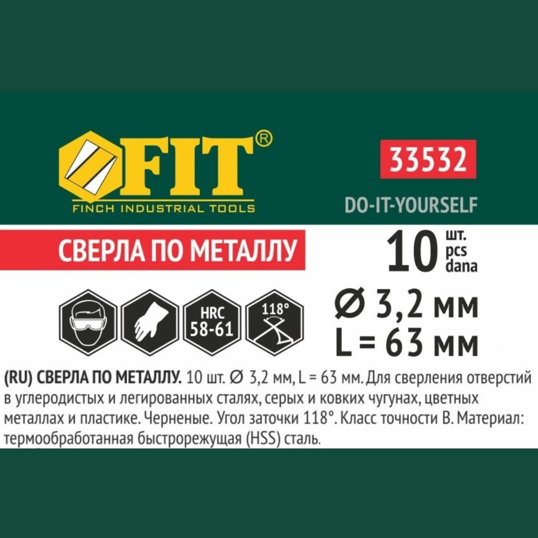 Сверла по металлу HSS черненые 3,0x61 мм (10 шт.) FIT 33530