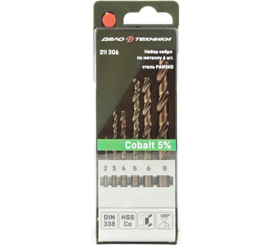 Набор свёрл Дело Техники по металлу Cobalt 5%, P6M5K5, 6 шт, 211206