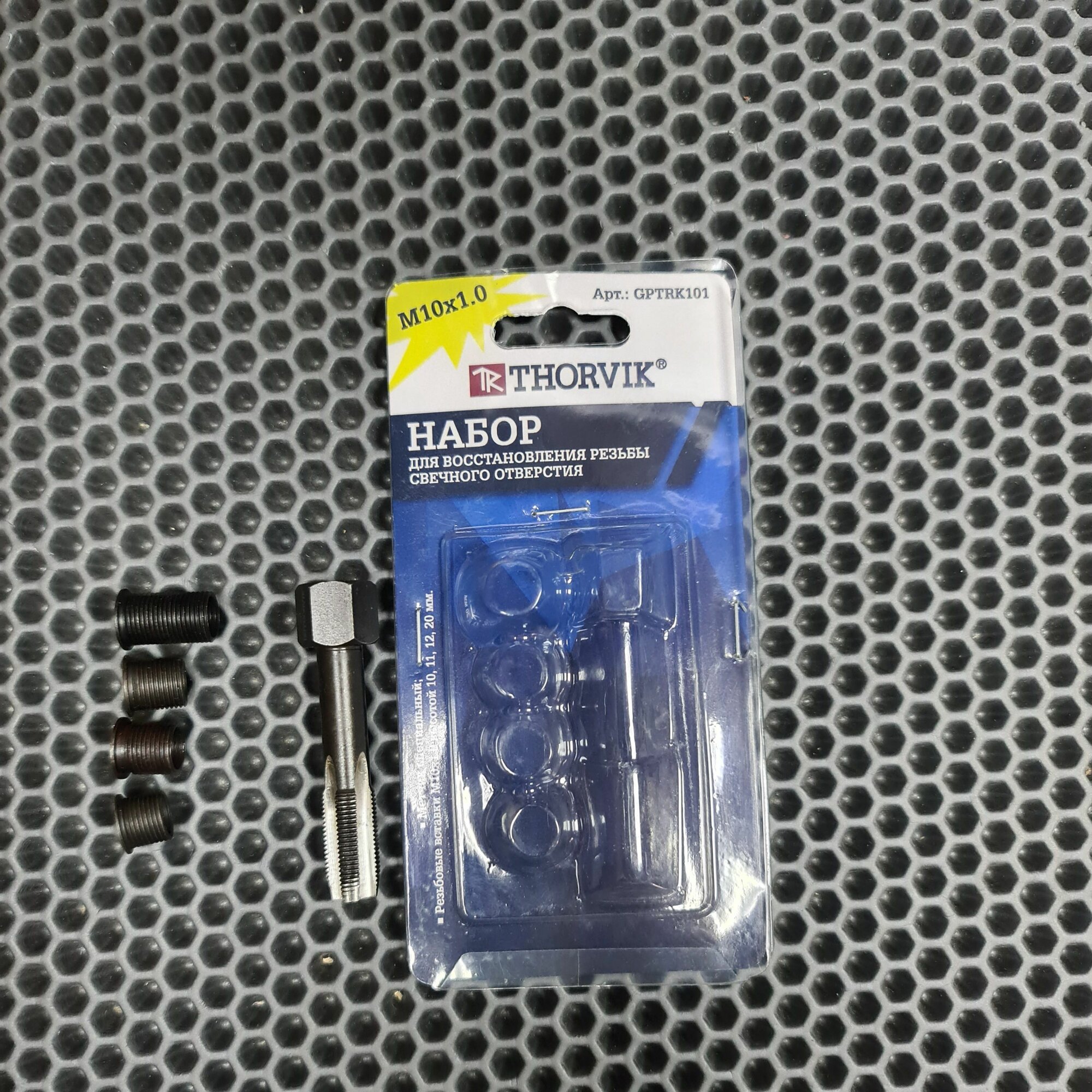 | Дополнительная информация | Набор для восстановления резьбы свечного отверстия М10х1.0, 5 предметов Thorvik |