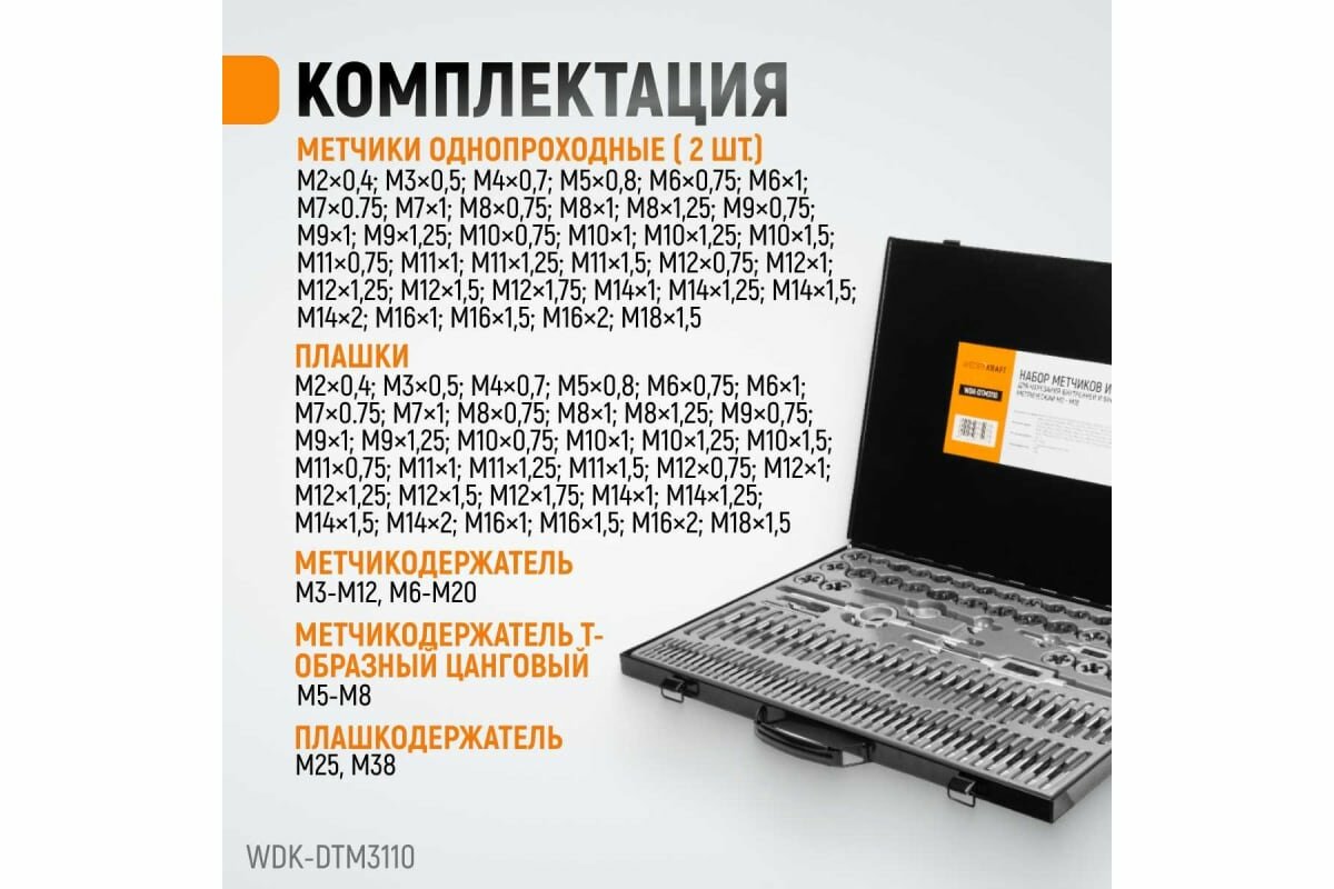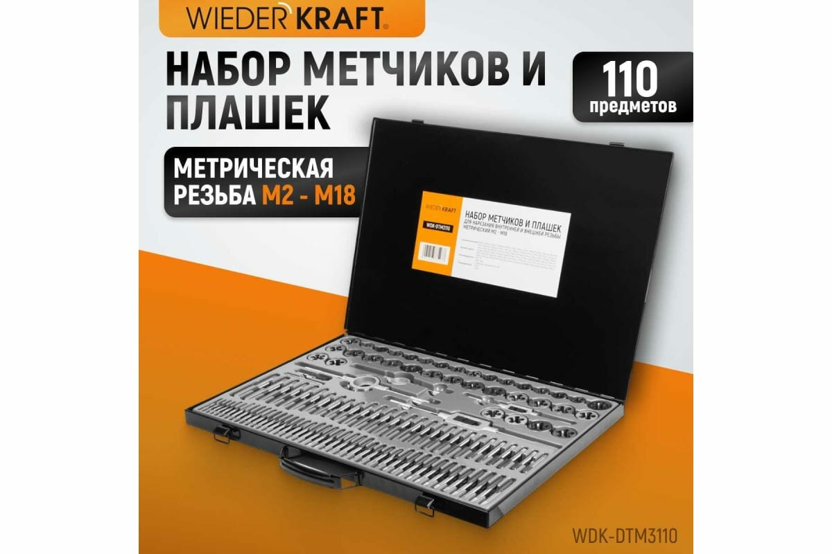 Купить Набор метчиков и плашек WIEDERKRAFT М2 - М18 110 предметов метрическая резьба WDK-DTM3110