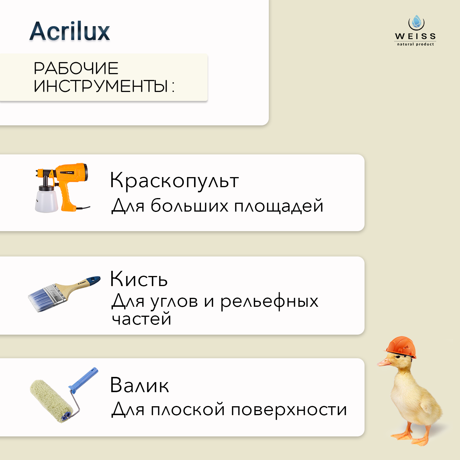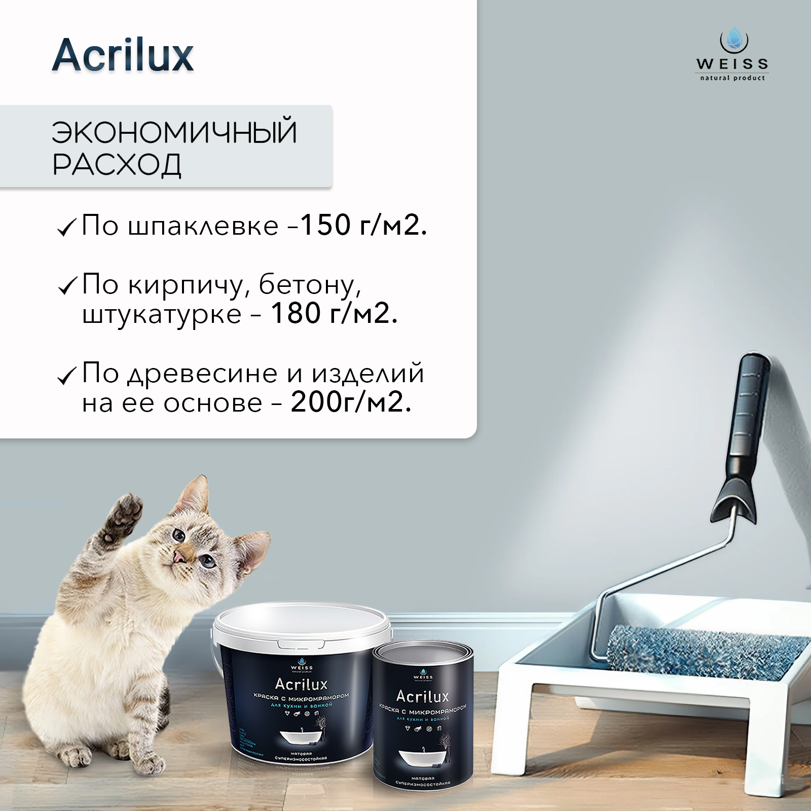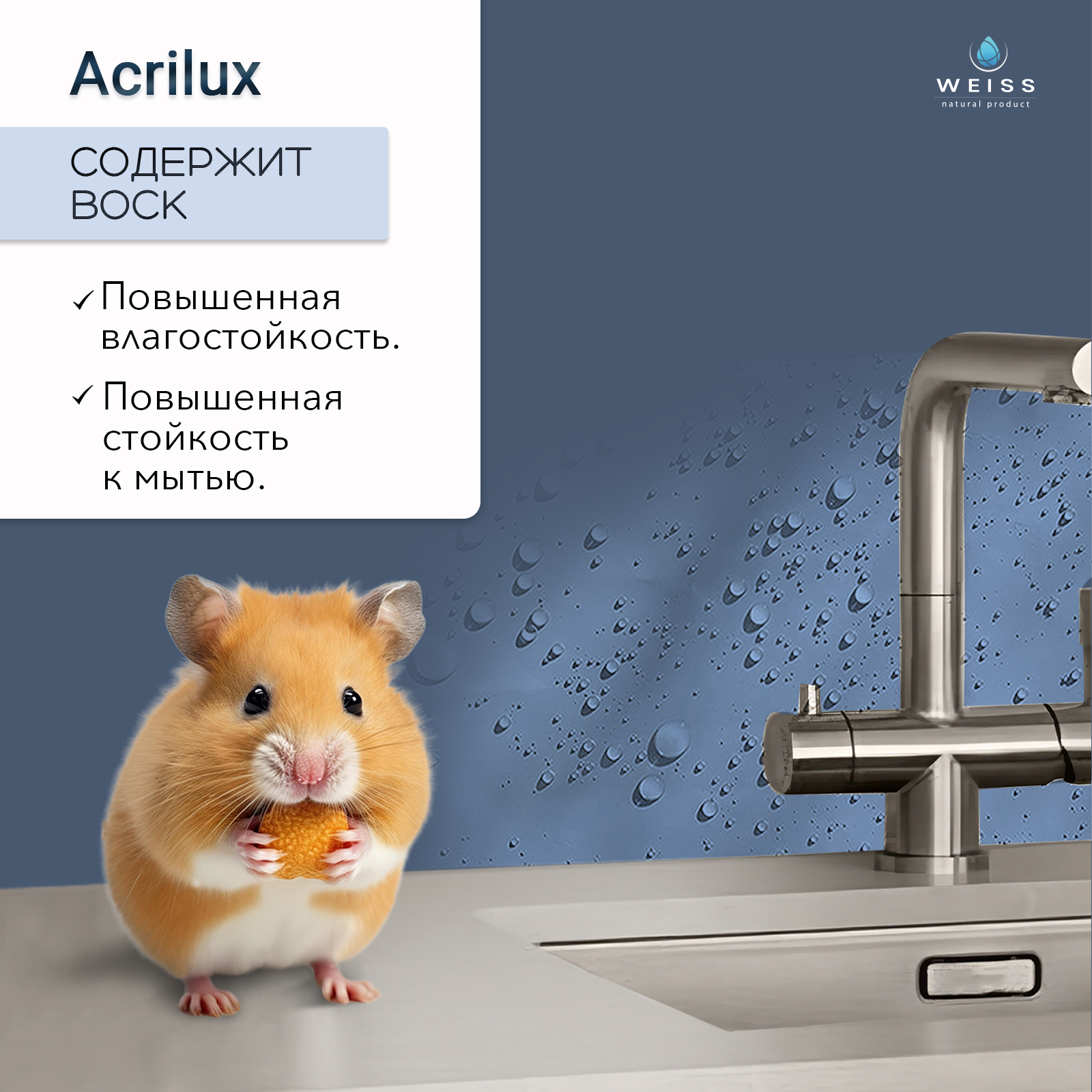 Краска латексная WEISS Acrilux для кухни и ванной комнаты влагостойкая моющаяся матовая, 2.75 W114