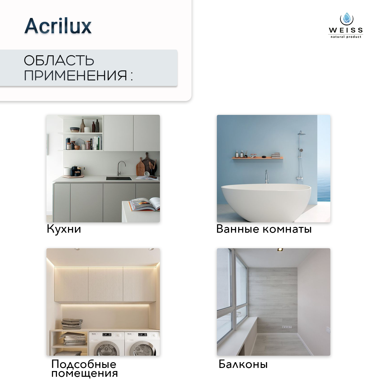 Краска латексная WEISS Acrilux для кухни и ванной комнаты влагостойкая моющаяся матовая 2.75л RAL 085 80 10