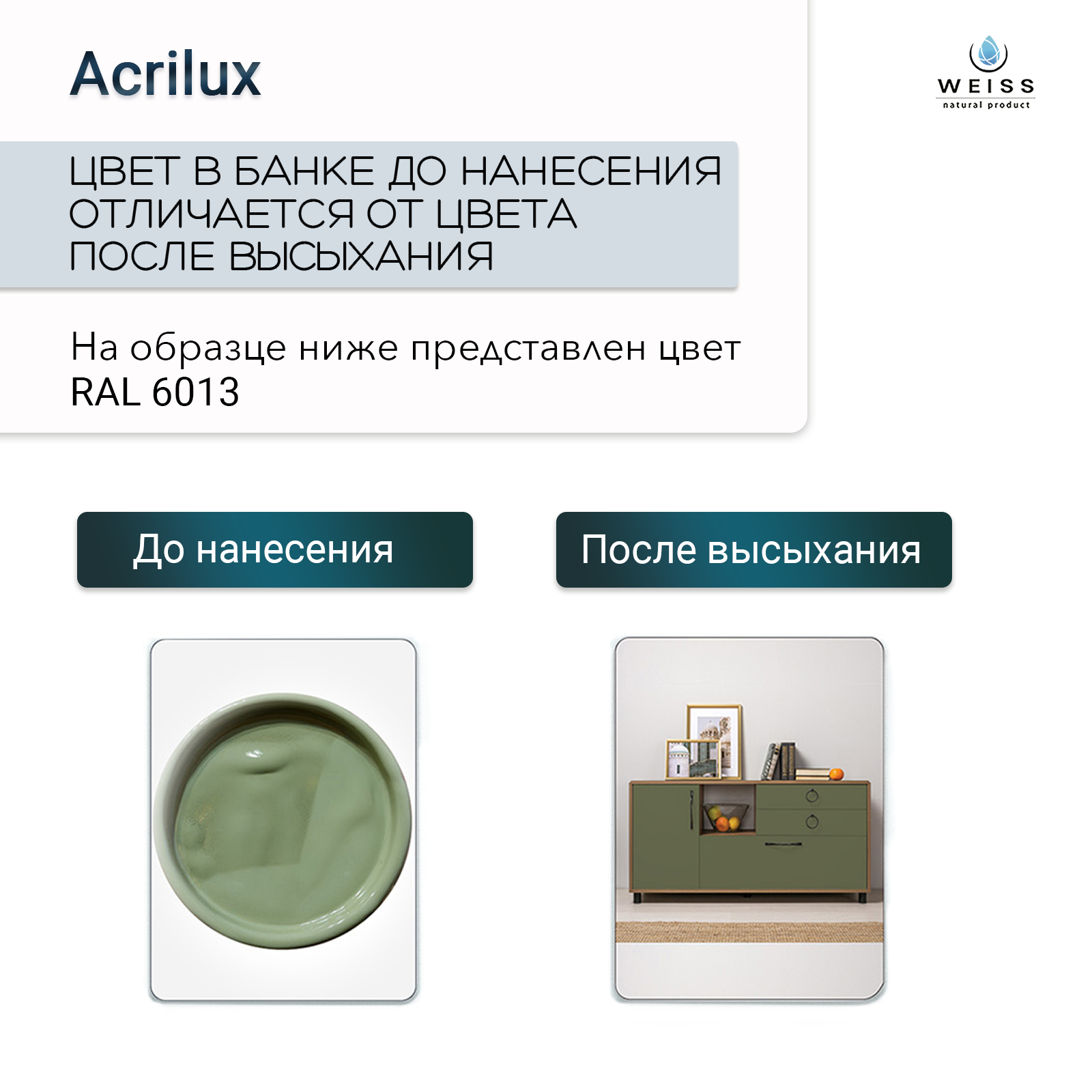 Краска латексная WEISS Acrilux для кухни и ванной комнаты влагостойкая моющаяся матовая1.1 л, RAL 060 50 20