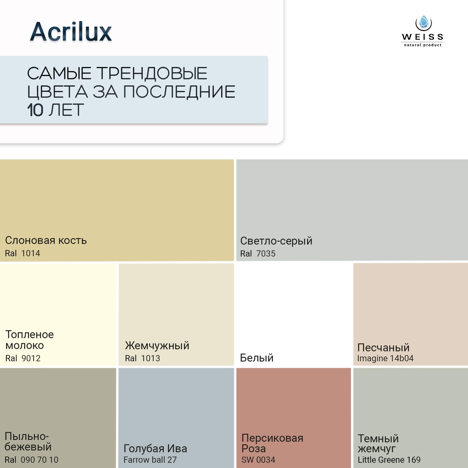 Краска латексная WEISS Acrilux для кухни и ванной комнаты влагостойкая моющаяся матовая 2.75л Ral 130 60 10