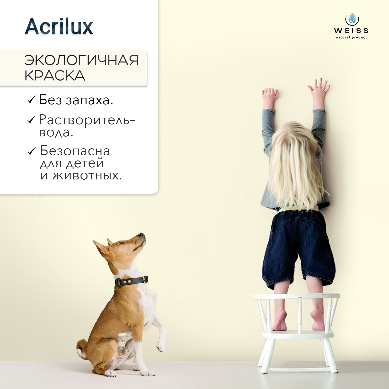 Краска латексная WEISS Acrilux для кухни и ванной комнаты влагостойкая моющаяся матовая, 2.75 W114