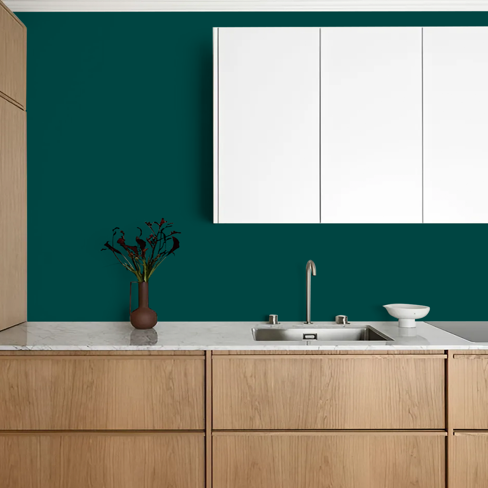 Купить Краска акриловая, моющаяся для стен и влажных помещений, кухни и ванной комнаты 1.1л Ral 6004 Изумрудный
