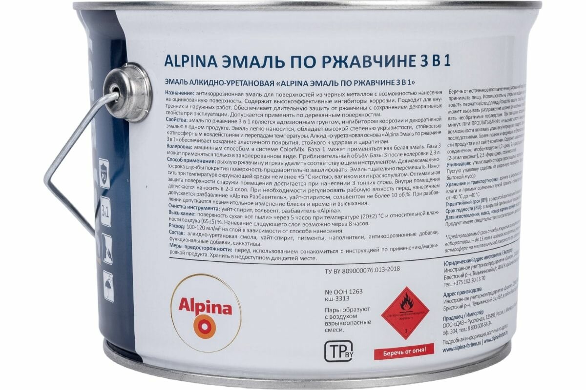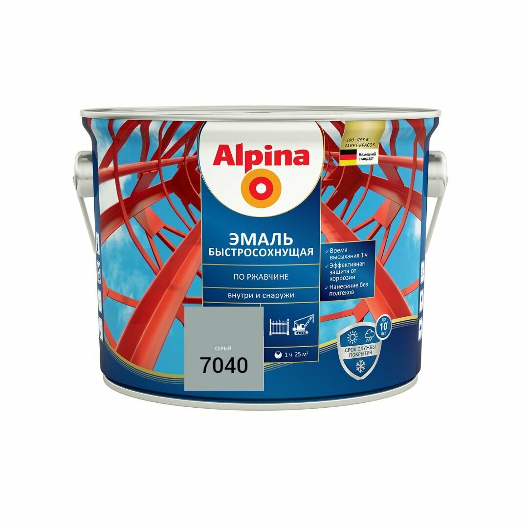 Купить Alpina эмаль быстросохнущая по ржавчине (серый, RAL 7040, полуматовый, 2,5л)