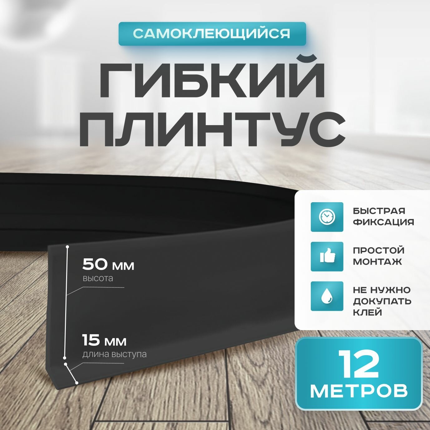 Плинтус гибкий напольный самоклеящийся, 65мм х 3м, чёрный, гибкий плинтус для пола.
