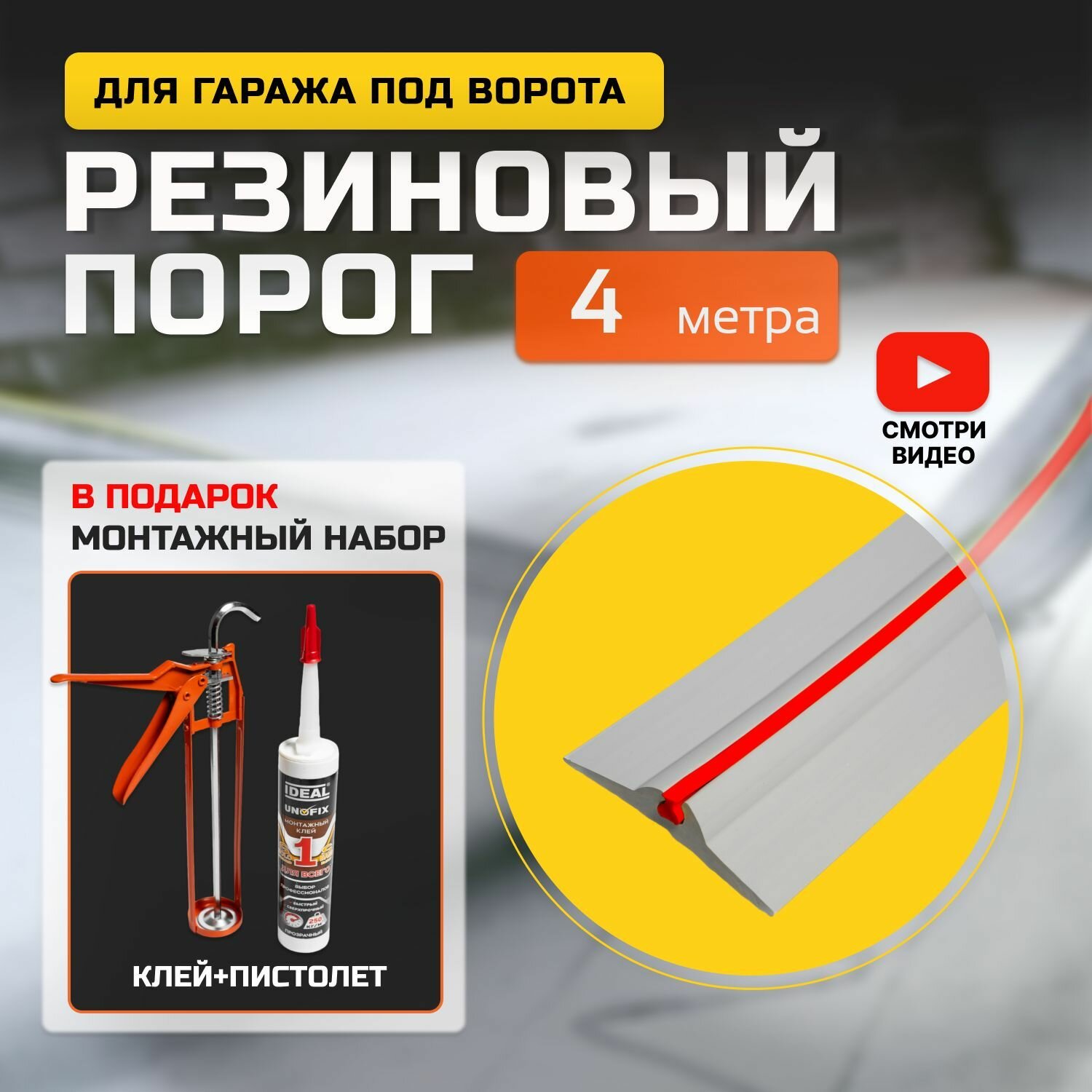 Резиновый порог для гаража под ворота 90х15, уплотнительная лента на пол, 4м