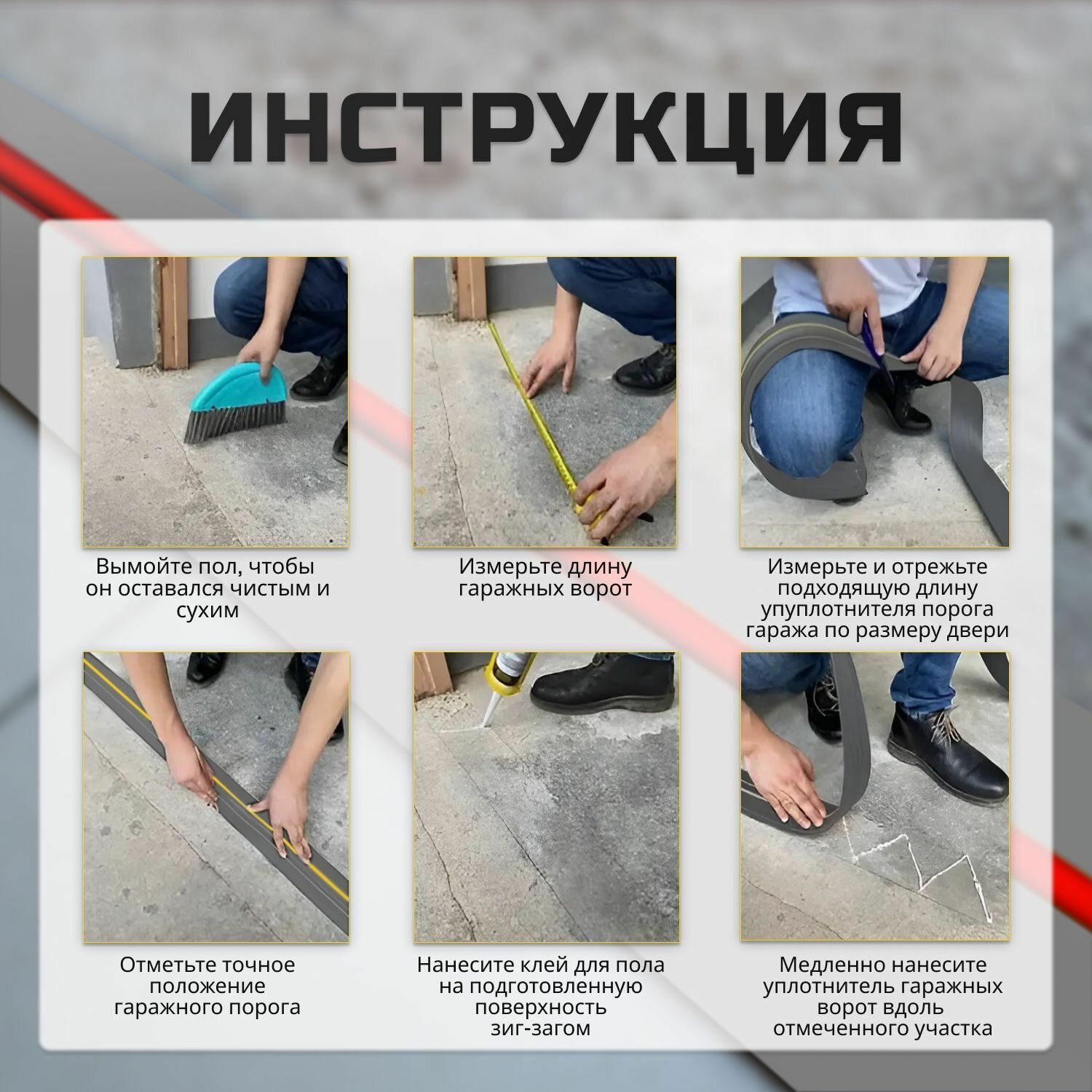 Резиновый порог для гаража под ворота 90х15, уплотнительная лента на пол, 6м