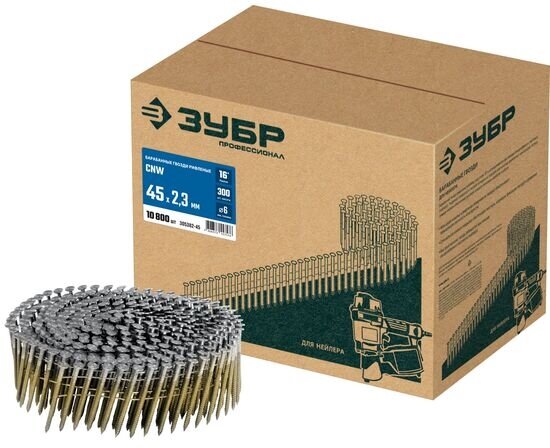 ЗУБР CNW 45 х 2.3 мм, барабанные гвозди рифленые оцинкованные, 10800 шт (305383-45) (305383-45)
