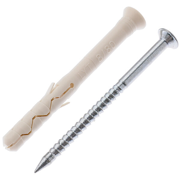 СохранитьДюбель 75663 LYT 8/80 UK KP нейлоновый потай с металлическим гвоздем (Sormat) (100 шт. в наборе) интересное: