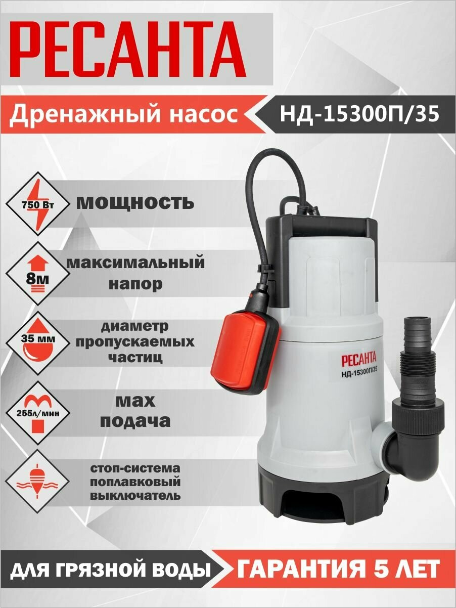 Купить Дренажный насос Ресанта НД-15300П/35 Ресанта (77/2/7)