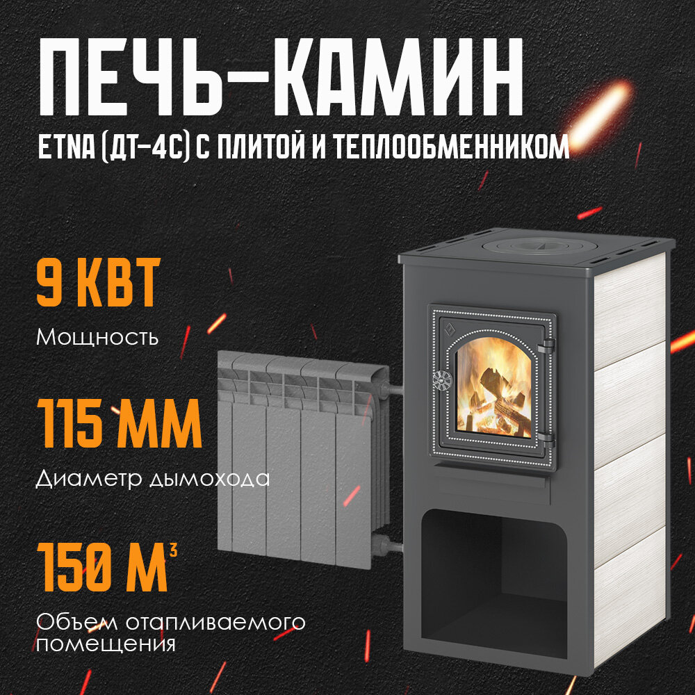 Печь-камин ETNA (ДТ-4С) с плитой и теплообменником дровяная для дома интересное: