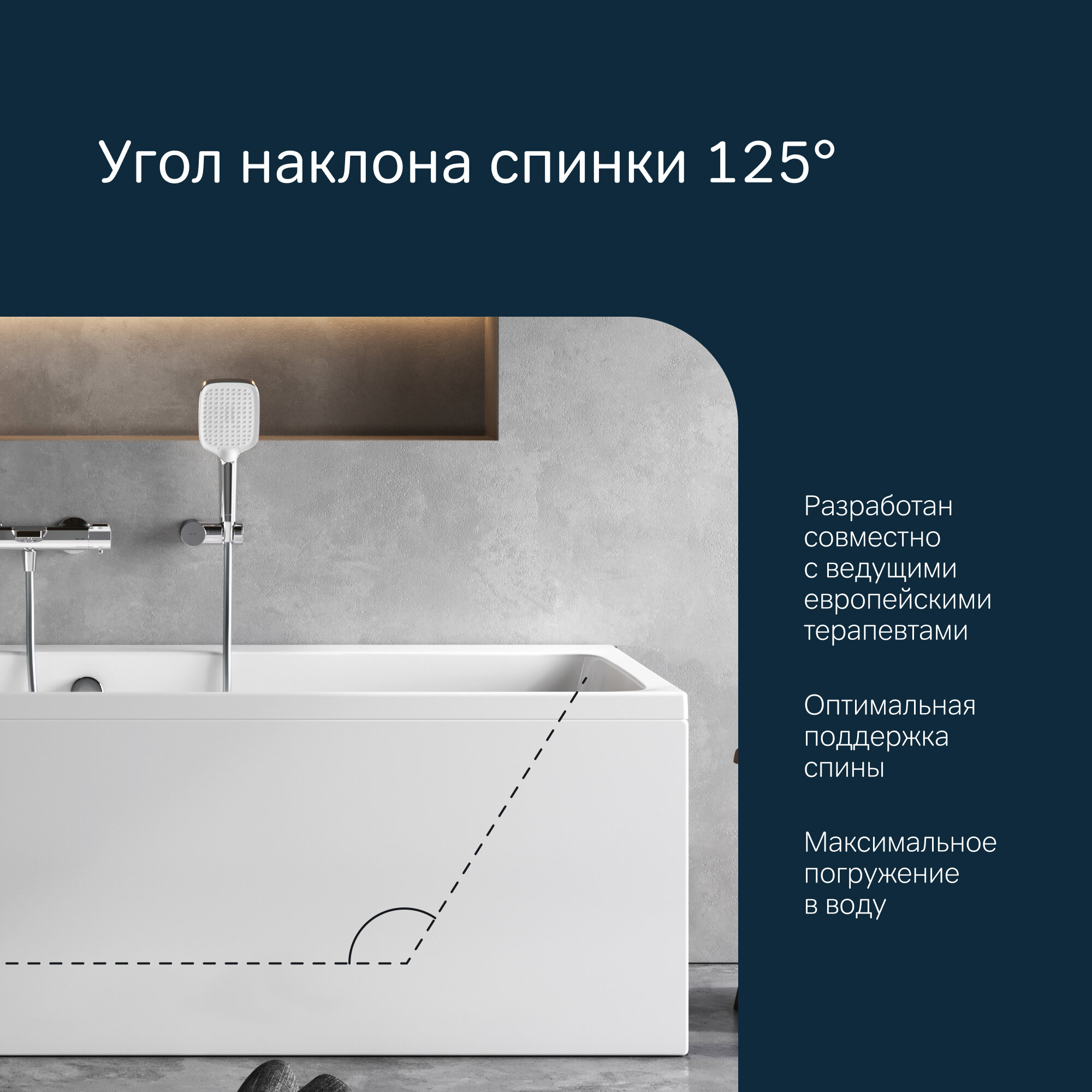 Ванна акриловая 170x70 см AM.PM Func W84A-170-070W-A, ванная 170 на 70 акриловая, полка для хранения, декоративная заглушка слива, ванны акриловые, усиленный корпус, гарантия 15 лет, Германия