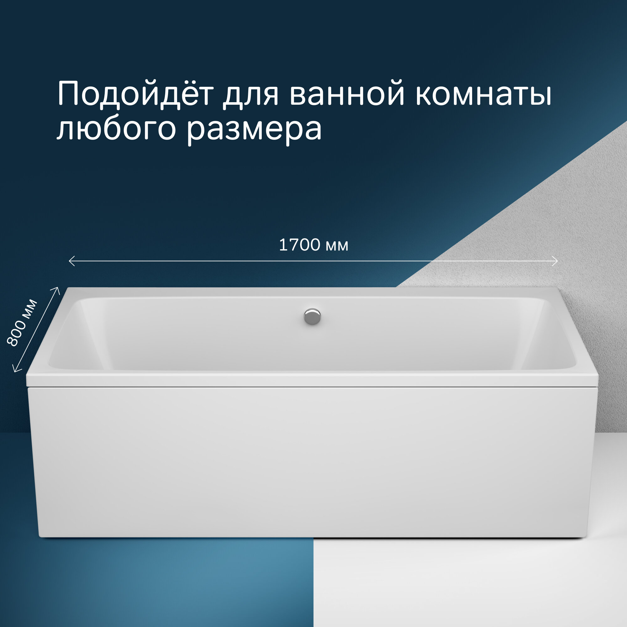 Ванна акриловая 170x70 см AM.PM Func W84A-170-070W-A, ванная 170 на 70 акриловая, полка для хранения, декоративная заглушка слива, ванны акриловые, усиленный корпус, гарантия 15 лет, Германия