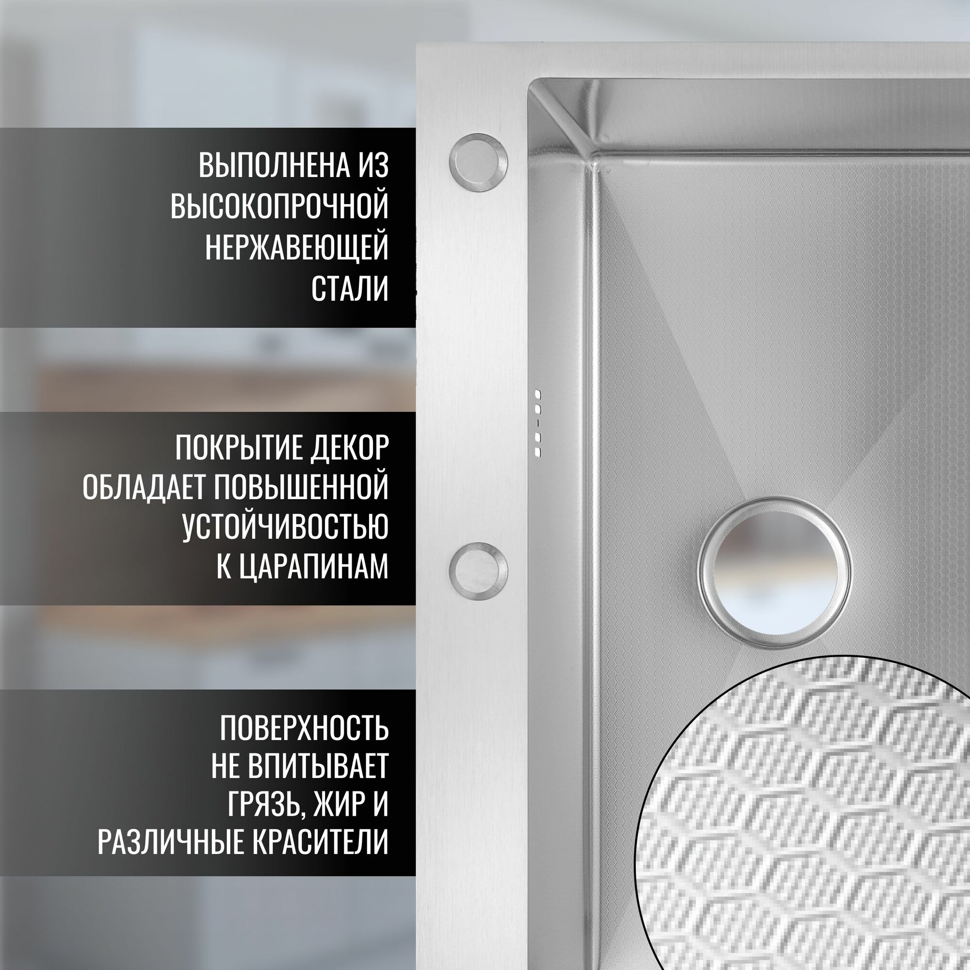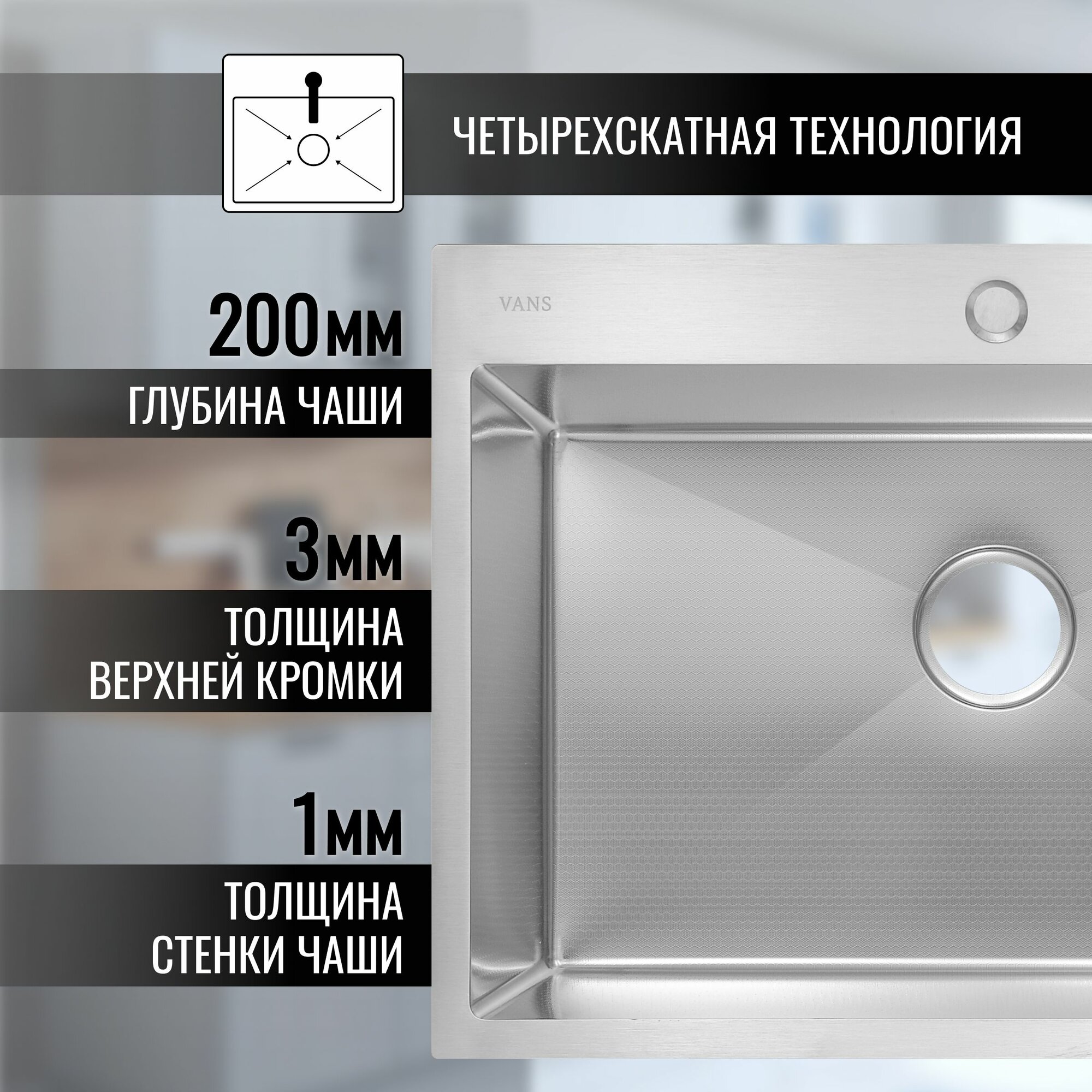 Кухонная мойка из нержавеющей стали "VANS" 650*505*200 мм Satin DECOR интересное: