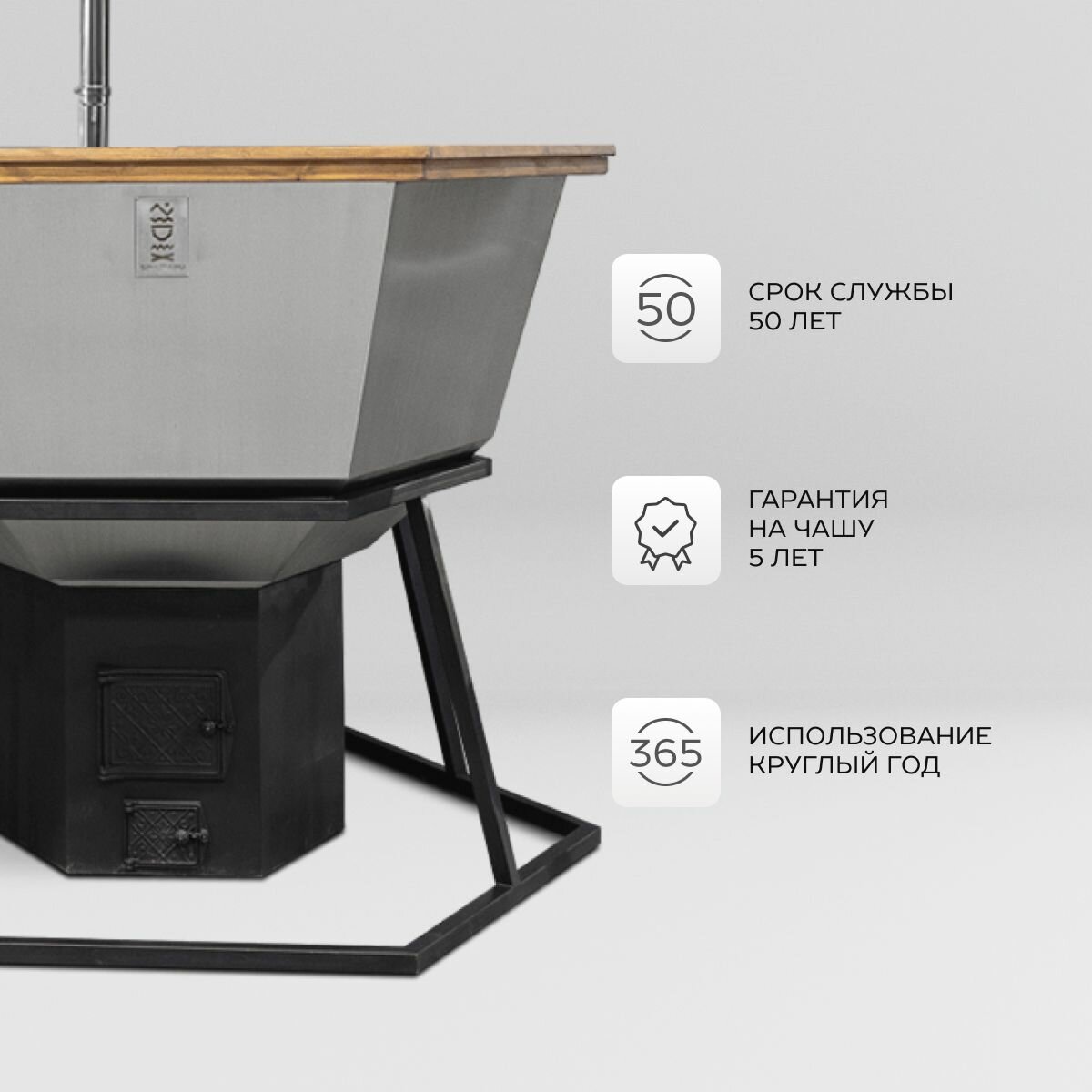 | Подробная комплектация | Чаша из нержавеющей стали AISI 430 толщиной 2 мм - 1 шт., Лестница из алтайского дерева - 1 шт., Опора из черного металла- 1 шт., Печь из черного металла - 1 шт., Дымоход - 1 шт. |