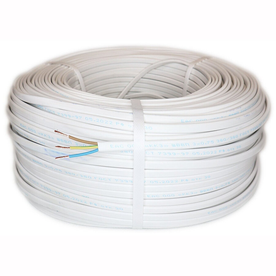Электрический Кабель ШВВП 3х0,75 80метров ГОСТ Калужский кабельный завод Белый.