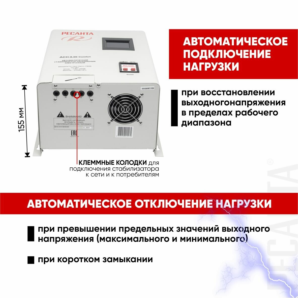 Стабилизатор напряжения АСН-8,0К Comfort Ресанта - настенный, от 140В, на 8 кВт, релейный для защиты техники от замыкания и скачков интересное: