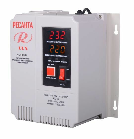 Купить Стабилизатор АСН -500К Ресанта LUX - для котла отопления, настенный от 140В, релейный для защиты техники от замыкания и скачков, для газового котла и дома, с термозащитой