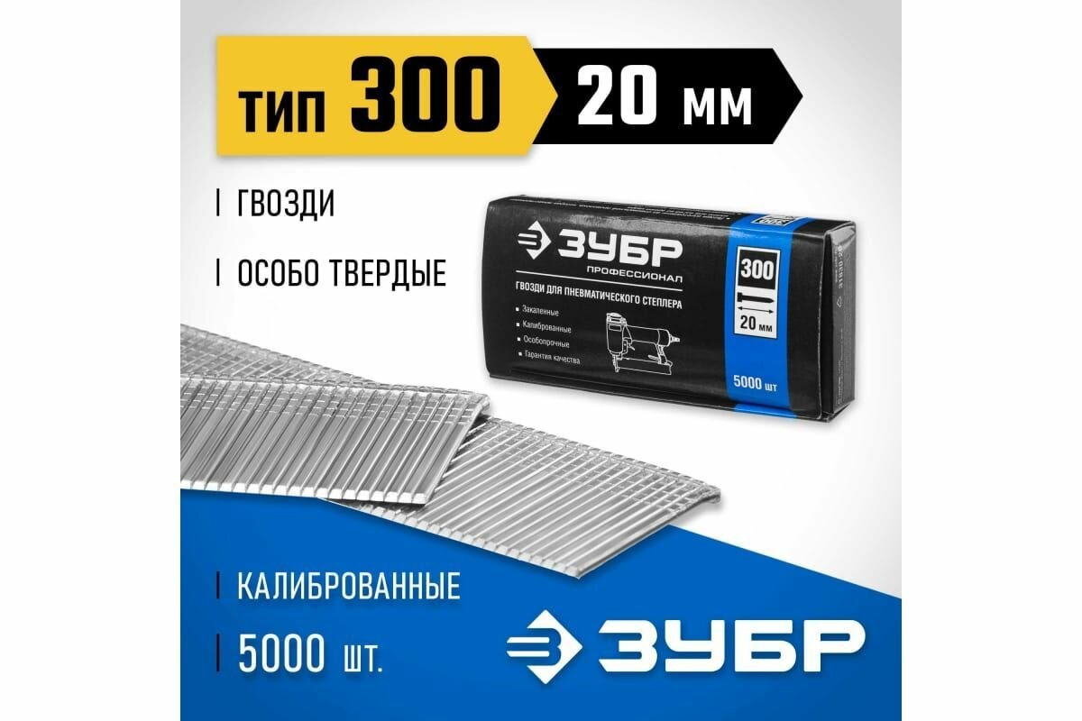 Купить ЗУБР 20 мм гвозди для нейлера тип 300, 5000 шт, ( 31830-20 )