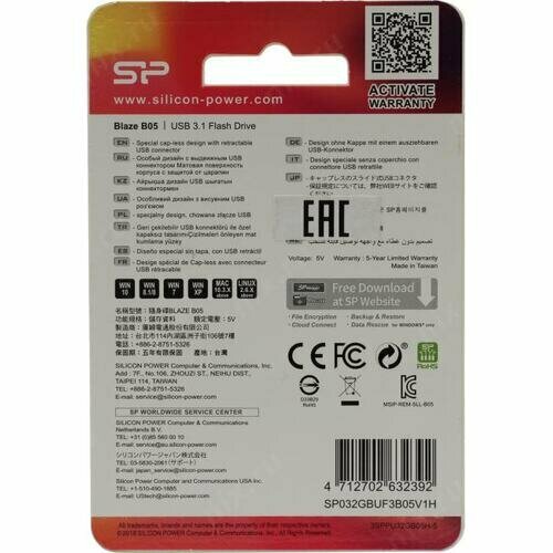 Флешка Silicon Power Blaze B05 32 ГБ, 1 шт., черный