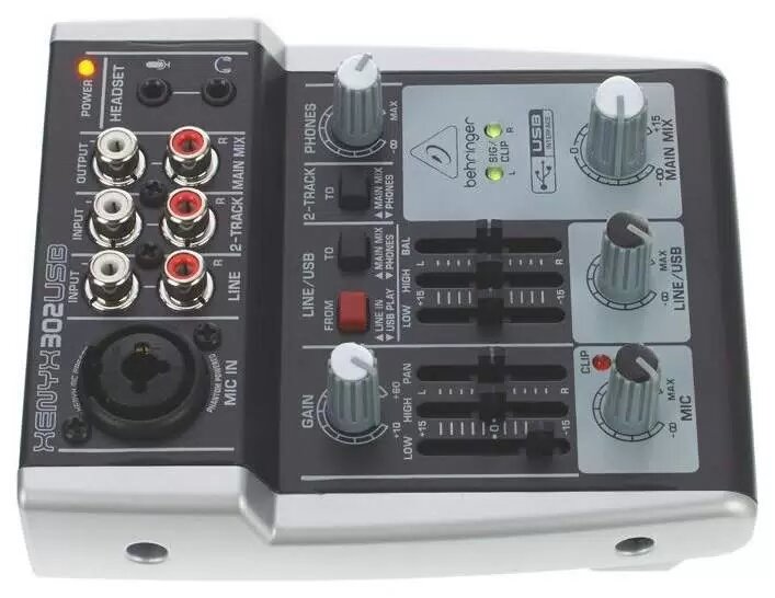 BEHRINGER 302USB микшер, 1 микрофонный моновход, 2 стерео входа, USB интерфейс