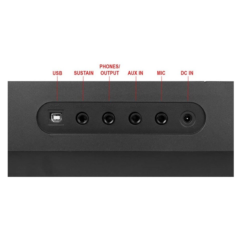 | Функции и опции | запись песен / караоке / метроном / обучение / разделение клавиатуры / реверберация / транспонирование / чувствительность клавиатуры к касанию |