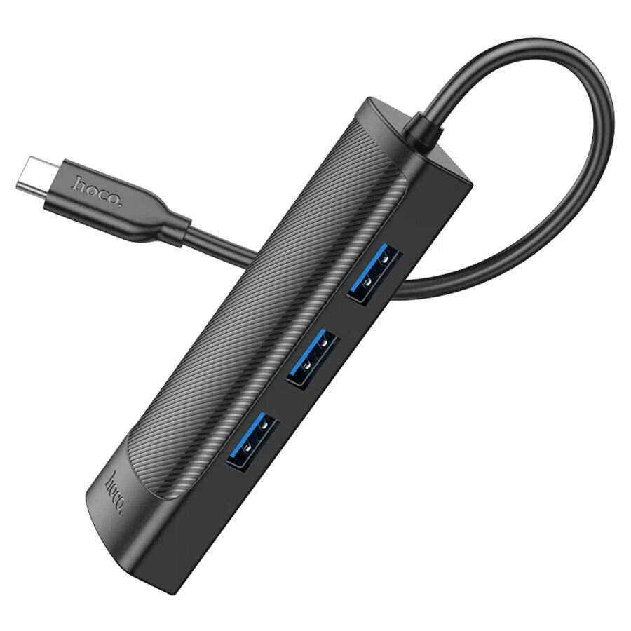 USB Хаб (HB42) с 1 USB на 3 USB 3.0+RJ45, HOCO, L=1.2M, черный