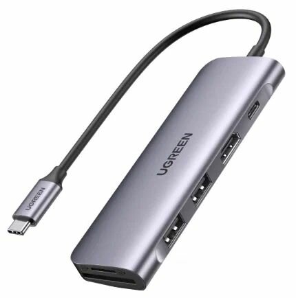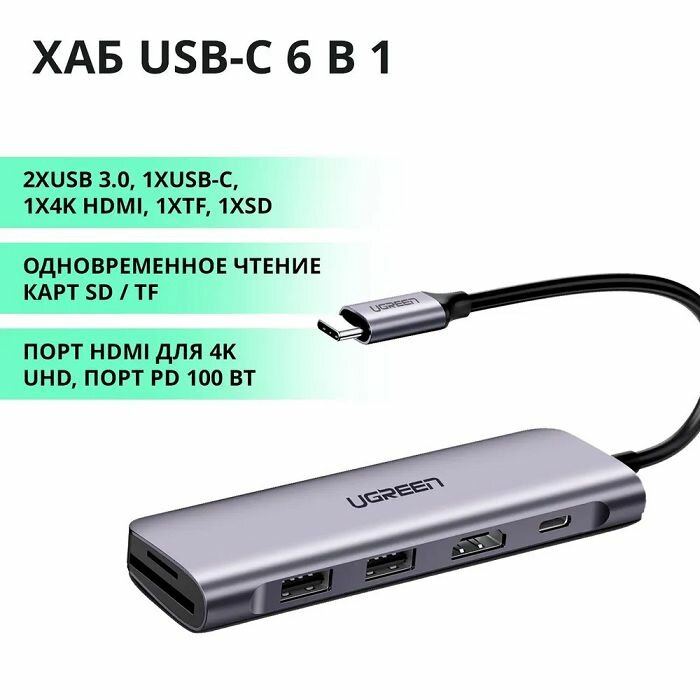 Док-станция UGREEN CM195 (15214) USB-C To HDMI+2*USB 3.0 A+ USB-C+SD/TF+PD Converter. Цвет: серый космос. интересное: