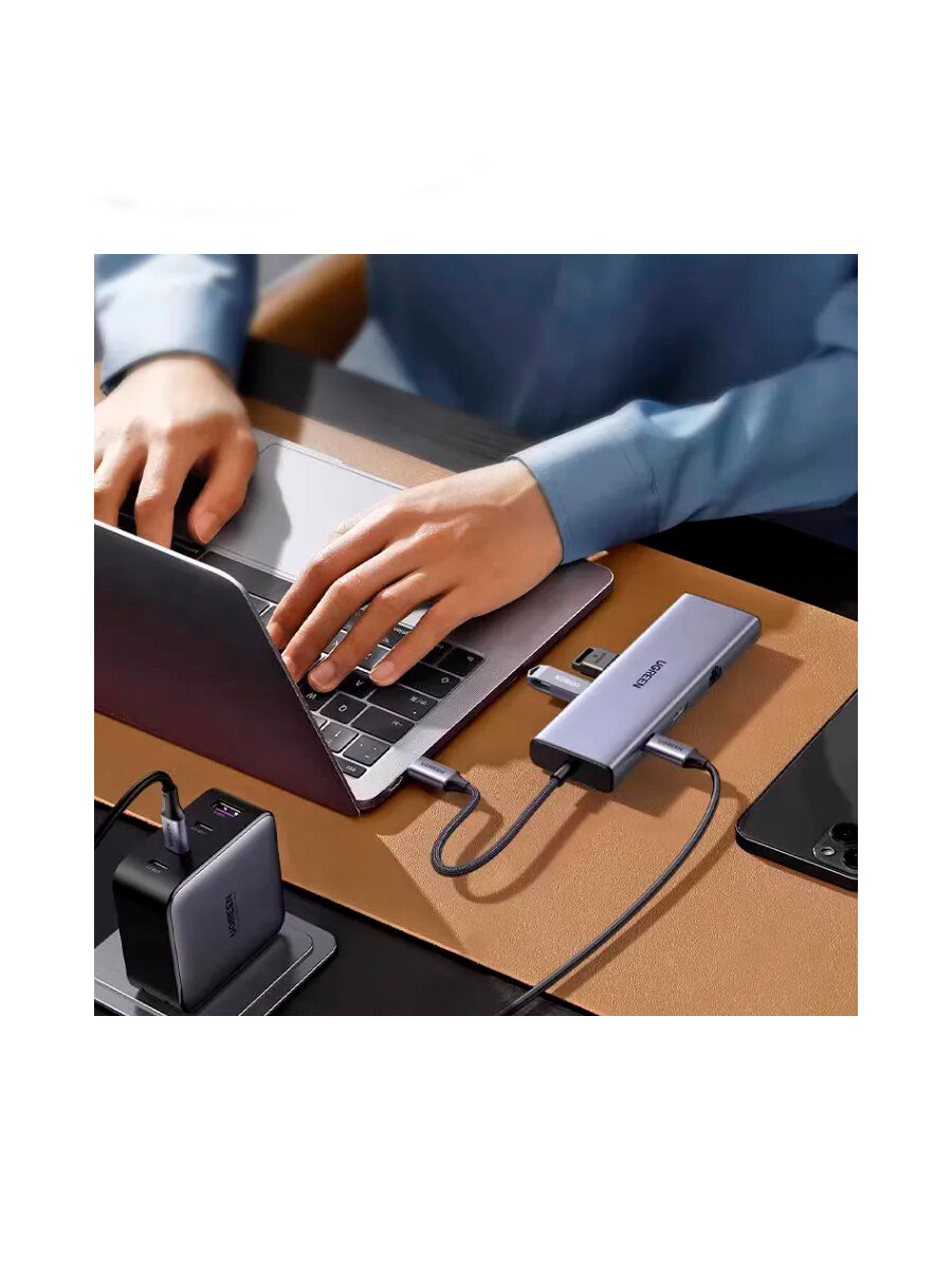 Хаб (разветвитель) Ugreen CM498, USB-C to 3*USB-A TF SD VGA RJ45 HDMI PD100W USB-C,(15600), серый