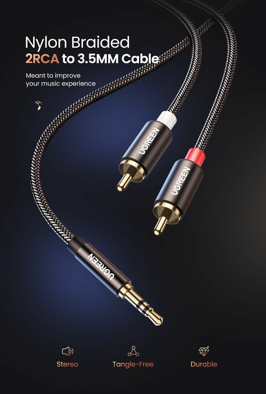 Кабель аудио UGREEN 10749 mini Jack 3.5 - 2 x RCA