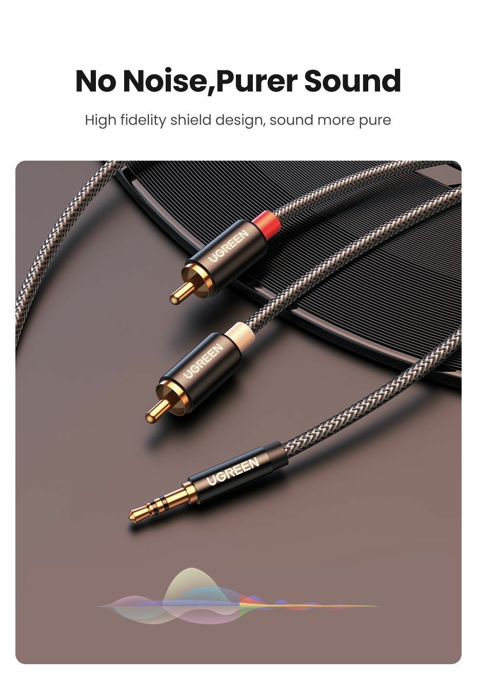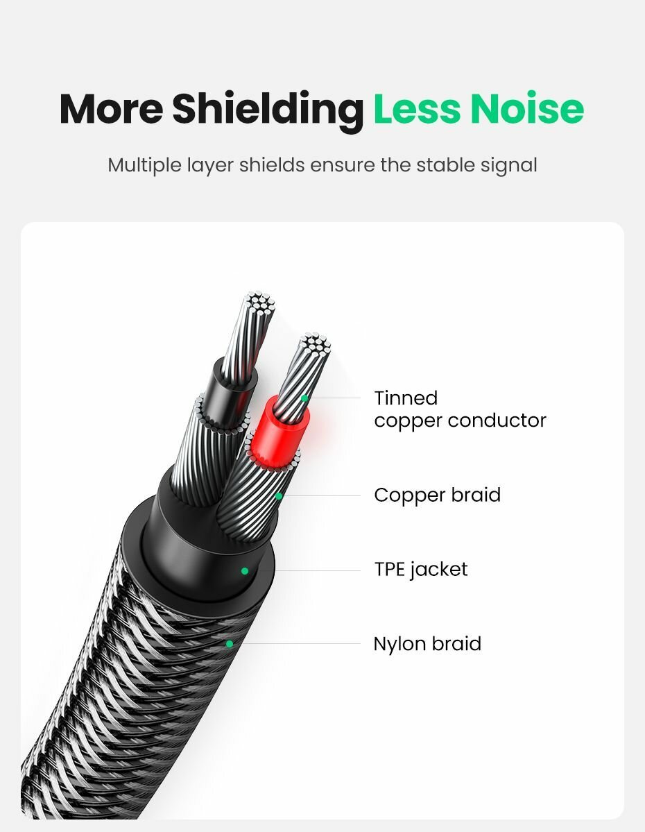 Кабель UGREEN AV116 (10590) 3.5mm Male To 2 RCA Male Cable. Длина: 3м. Цвет: черный интересное: