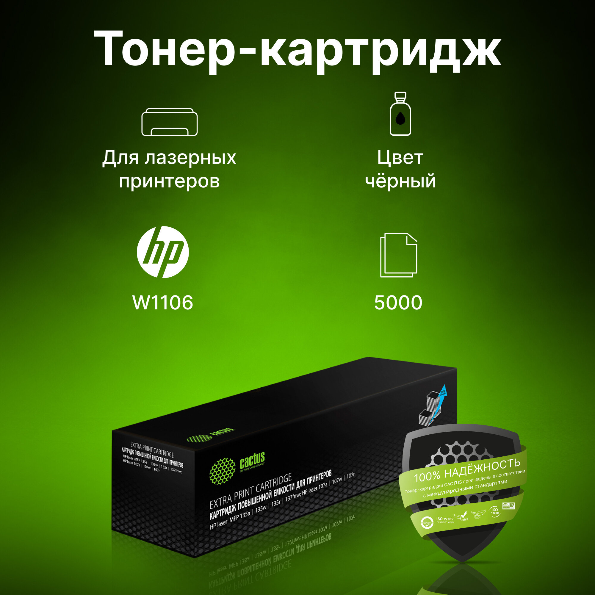 Картридж лазерный Cactus CSP-W1106X черный (3000стр.) для HP Laser 107a/107r/107w/135a MFP/135r MFP/ интересное: