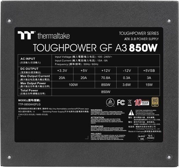 Купить Блок питания Thermaltake Toughpower GF A3 Gen.5, 850Вт, 140мм, черный, retail [ps-tpd-0850fnfage-h]