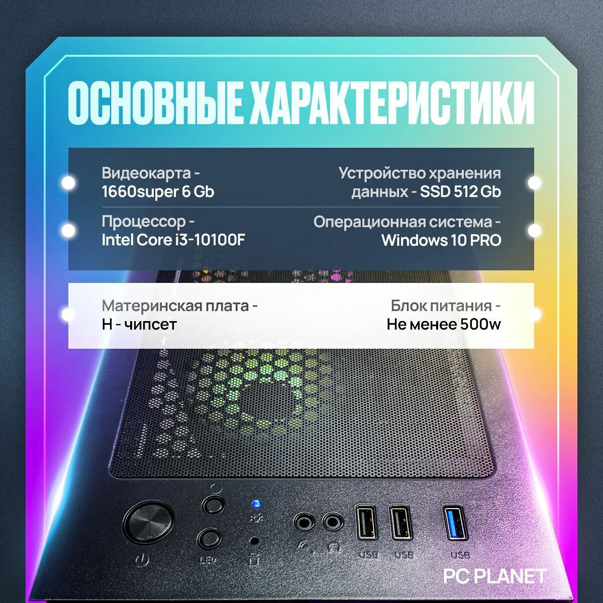Купить Игровой компьютер i3-10100F , RAM 16ГБ, SSD 512 ГБ, 1660 SUPER 6GB, Windows 10 , черный