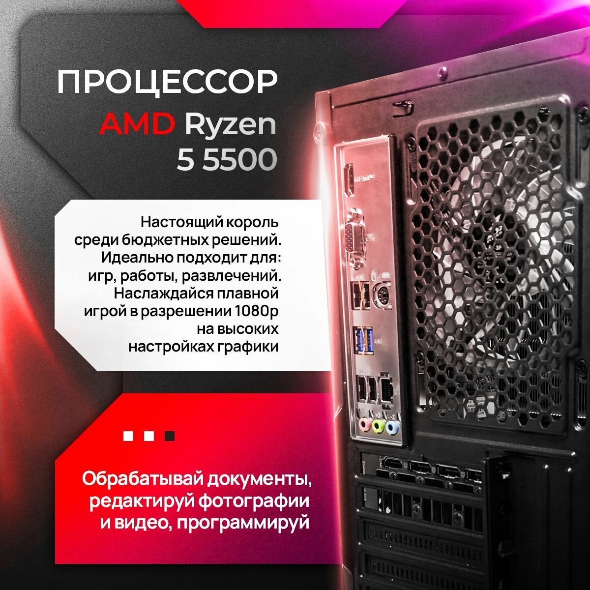 Ниже Вы можете прочитать отзывы на Игровой компьютер (процессор AMD Ryzen 5 5500 (6 ядер, 12 потоков), DDR4 16gb, SSD М2 1TB, 4060 8gb, ознакомится с подробными характеристиками, посмотреть интересные обзоры и фотографии на Игровой компьютер (процессор AMD Ryzen 5 5500 (6 ядер, 12 потоков), DDR4 16gb, SSD М2 1TB, 4060 8gb.