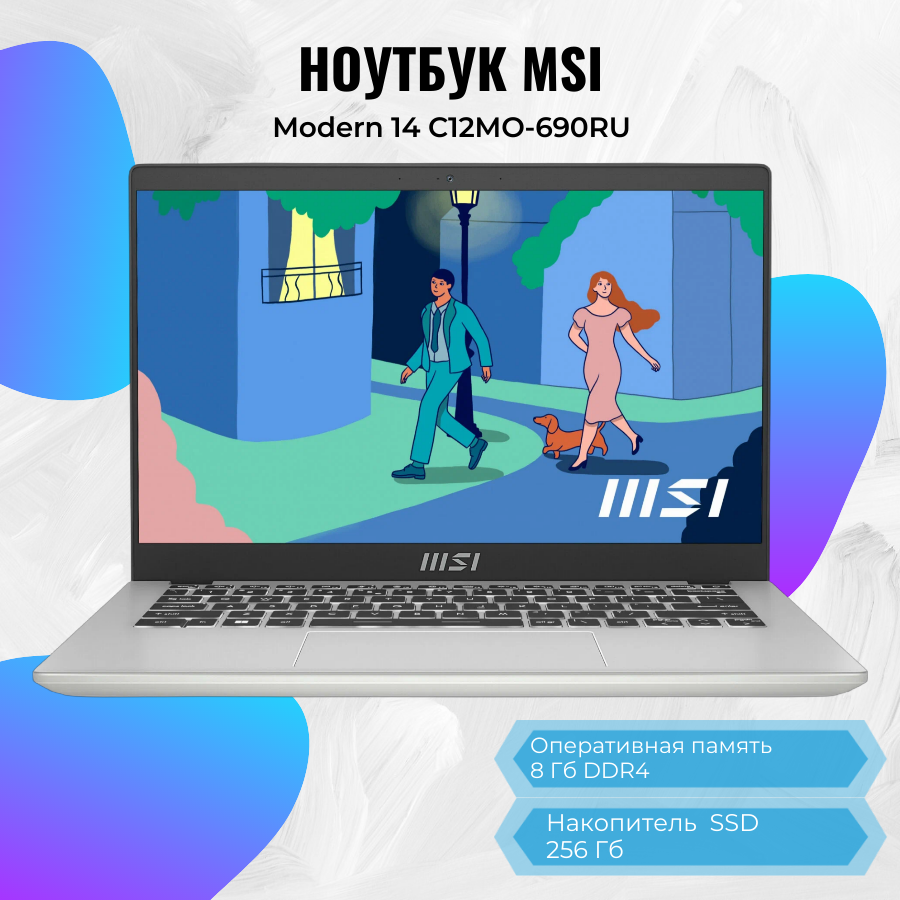 Купить Ноутбук MSI Modern 14 C12MO-690RU, 14", IPS, Intel Core i3 1215U, DDR4 8ГБ, SSD 256ГБ, Intel UHD Graphics, серебристый (9s7-14j111-690)