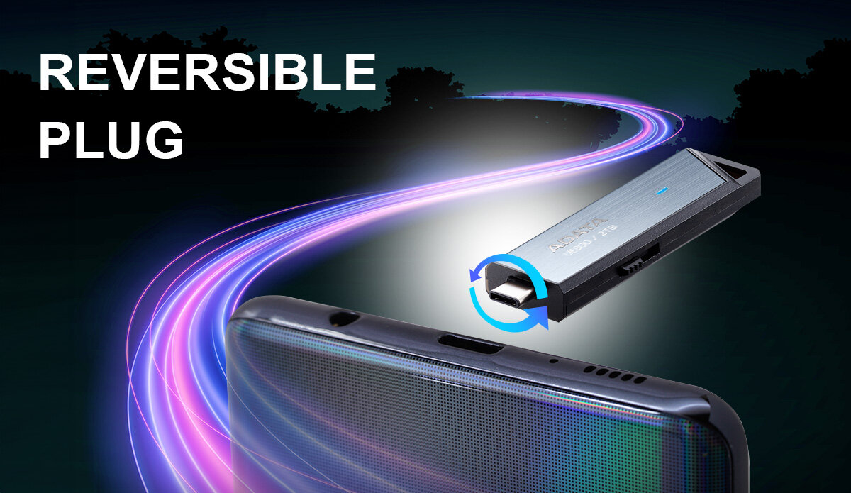 Флешка USB (Type-C) A-Data UE800 512ГБ, USB3.2, серебристый [aeli-ue800-512g-csg]