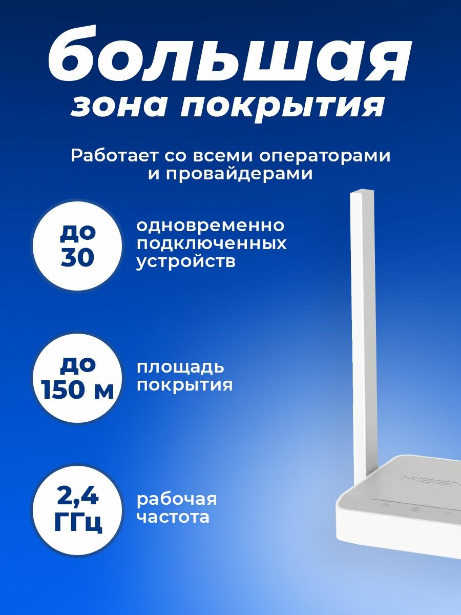 Беспроводной маршрутизатор Keenetic 4G (KN-1213), 802.11n, 300Мбит/с, 2.4ГГц, 3xLAN, 1xWAN, 1xUSB2.0, поддержка 3G/4G модемов