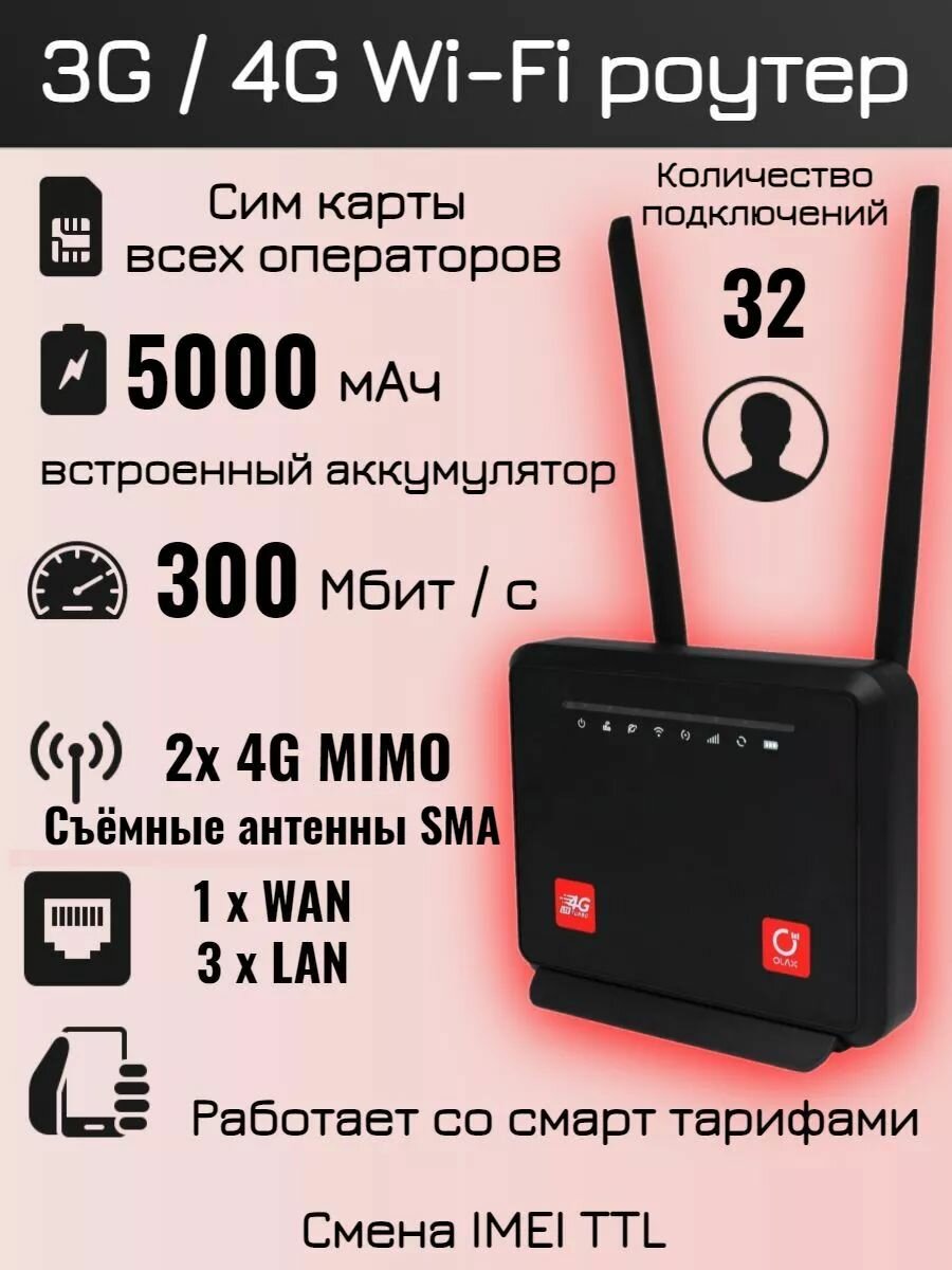 3G 4G Wi-Fi роутер Olax MC 60 ( MC60 ) IMEI TTL любой тариф 5000 мАч 32 пользователя интересное: