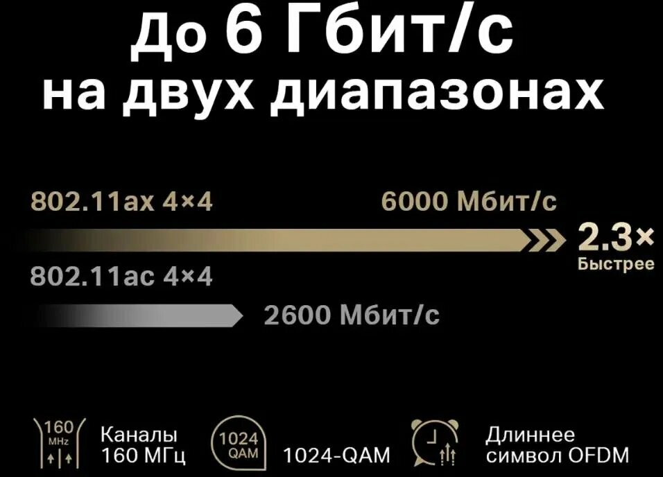 | Стандарт Wi-Fi 802.11 | ax (Wi-Fi 6) |
