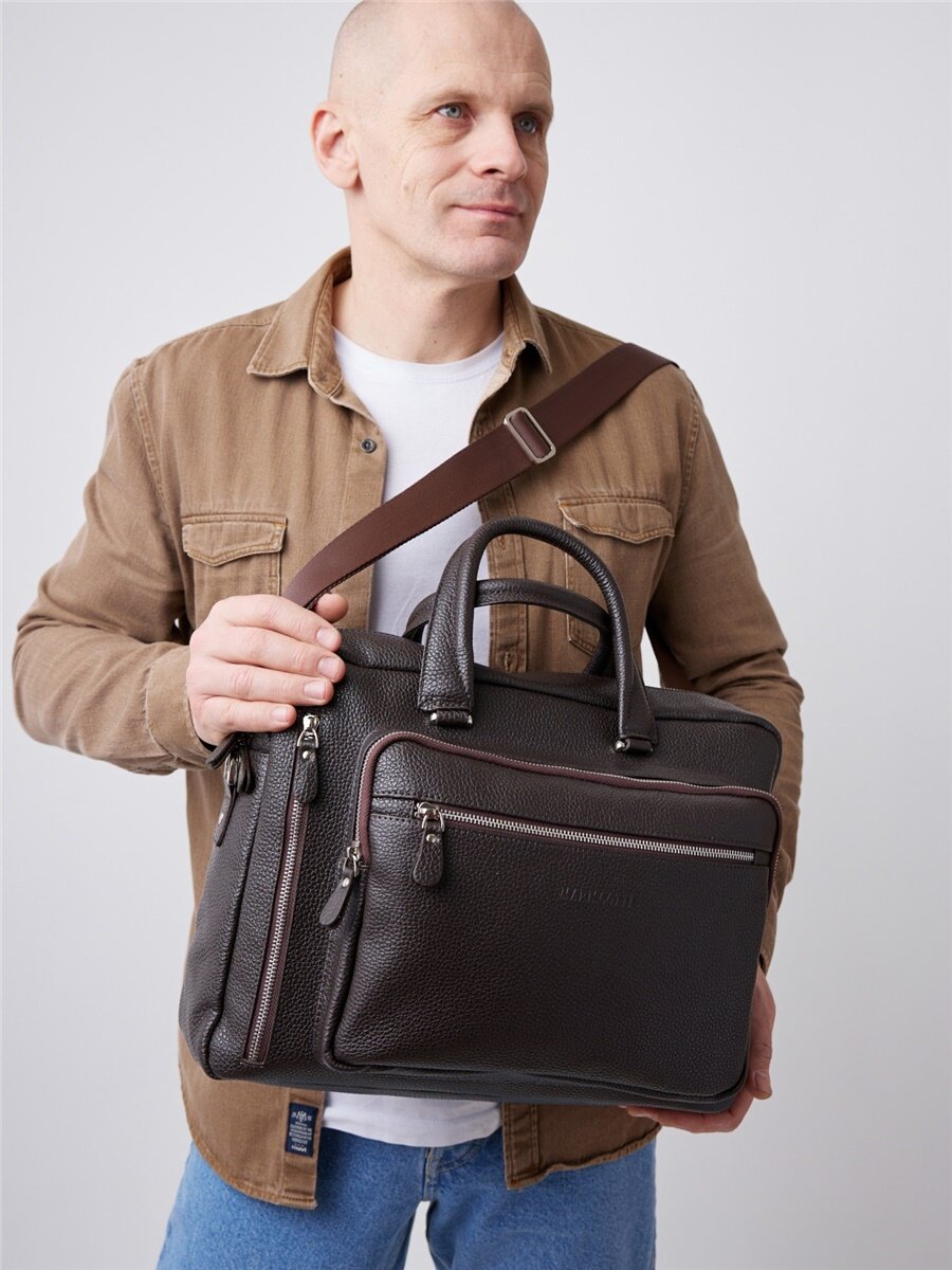 Мужская деловая кожаная сумка портфель на двух ручка с плечевым ремнем 2-1030 Franchesco Mariscotti интересное: