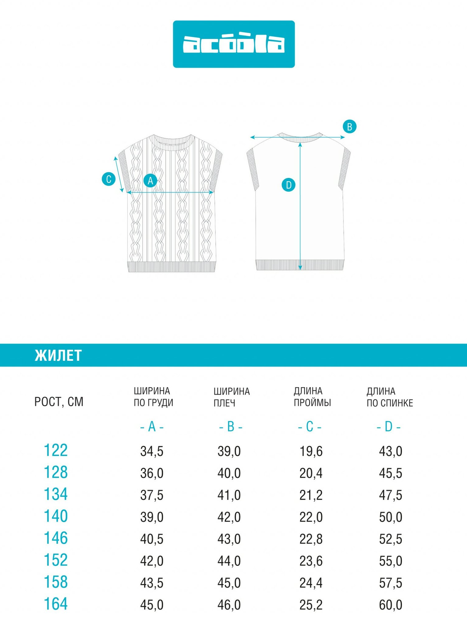 Школьный жилет Acoola, размер 122, молочный