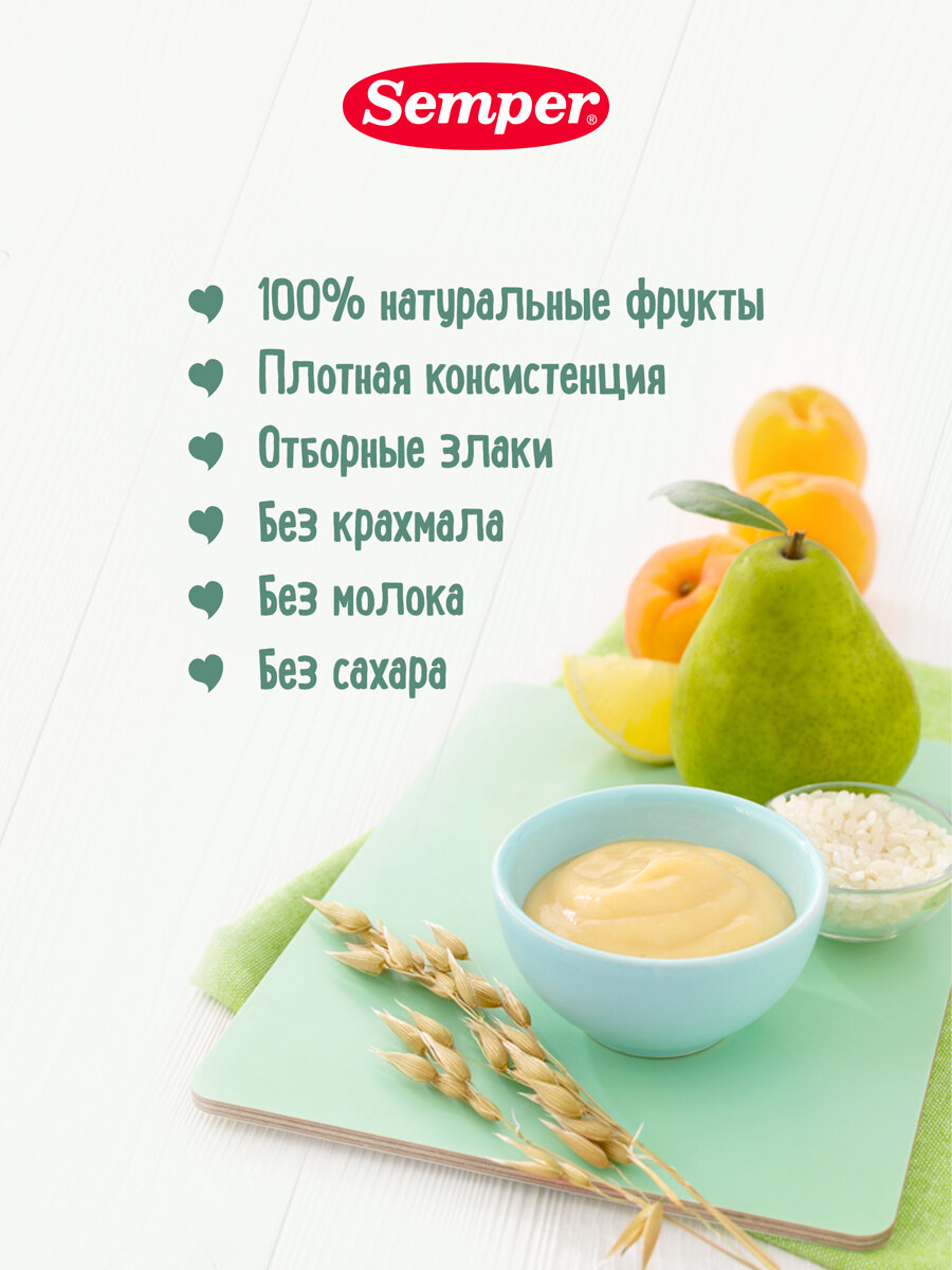 Каша с фруктовым пюре Semper Груша-абрикос без добавления сахара, с 6 месяцев, 120 г интересное: