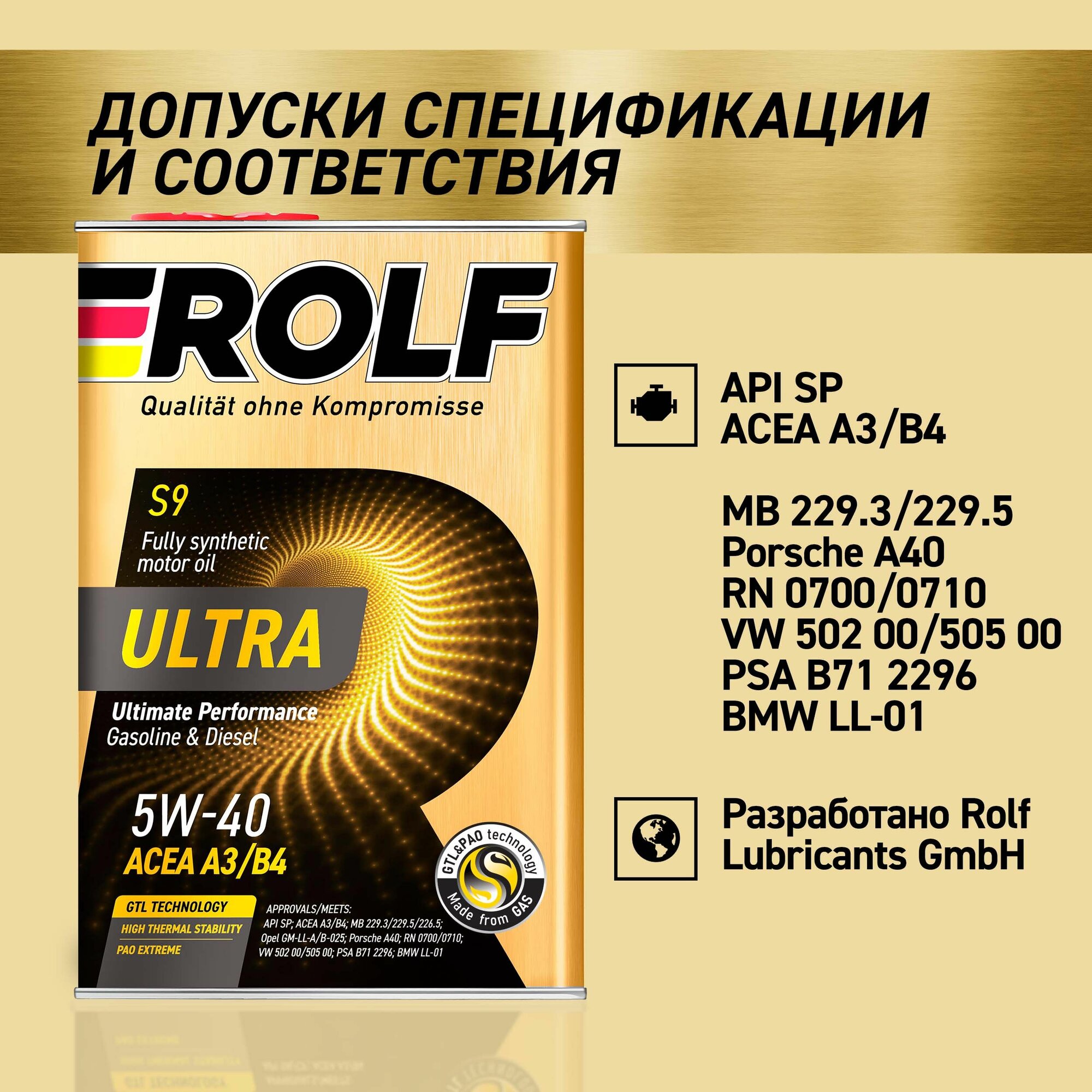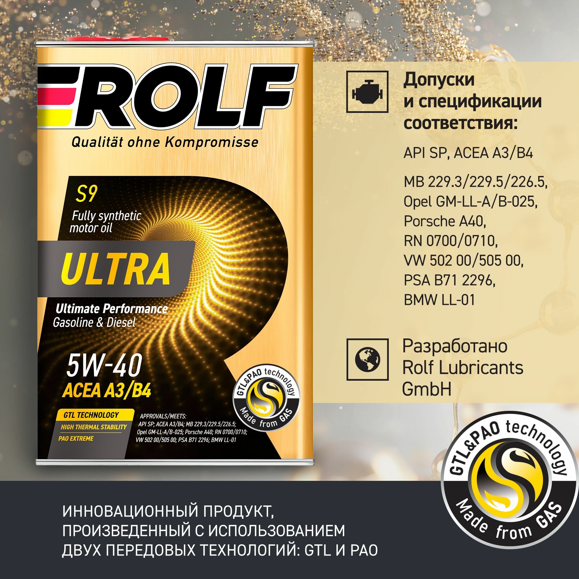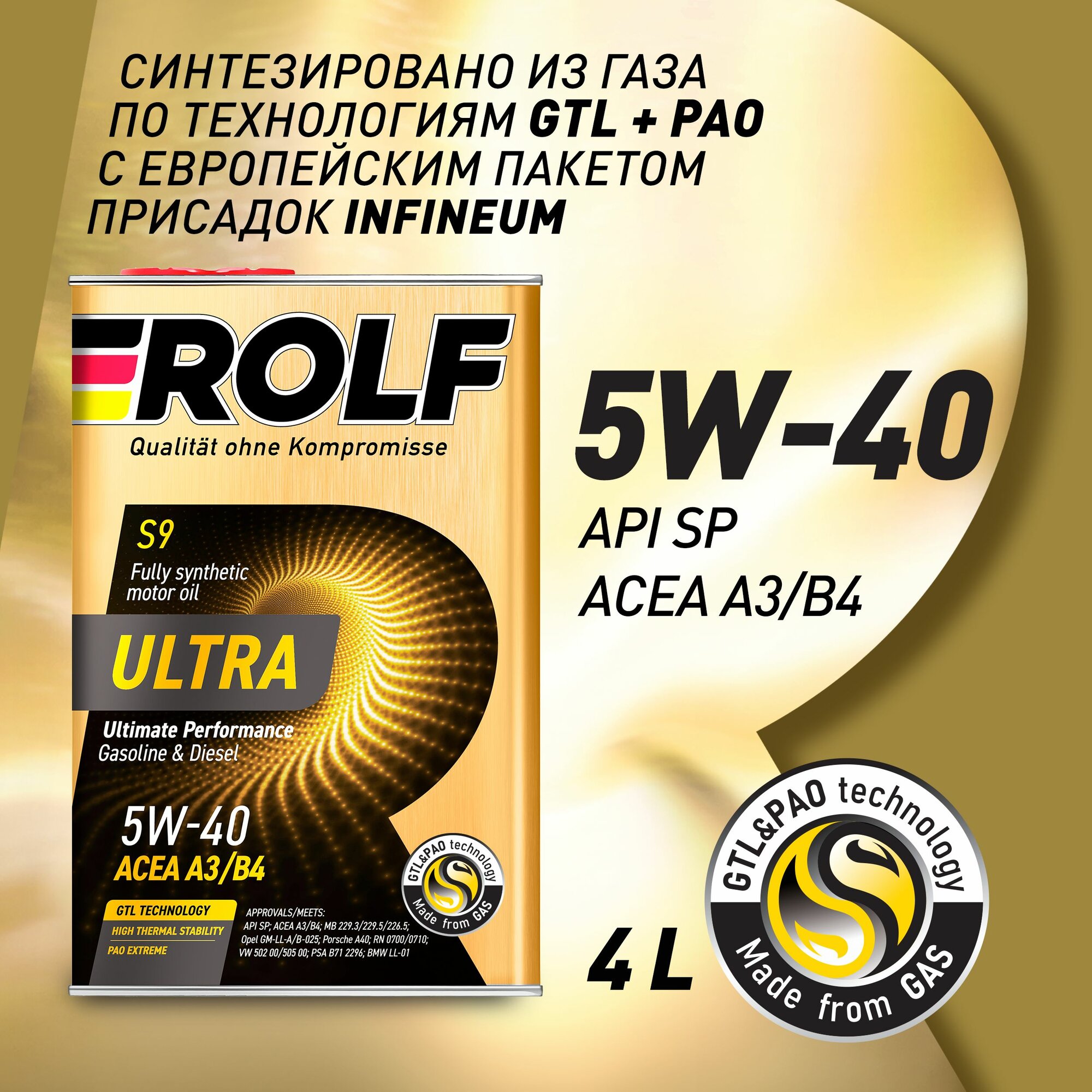 Моторное масло ROLF Ultra 5W-40 (4л) ROLF-5W40-UA3B4-4L