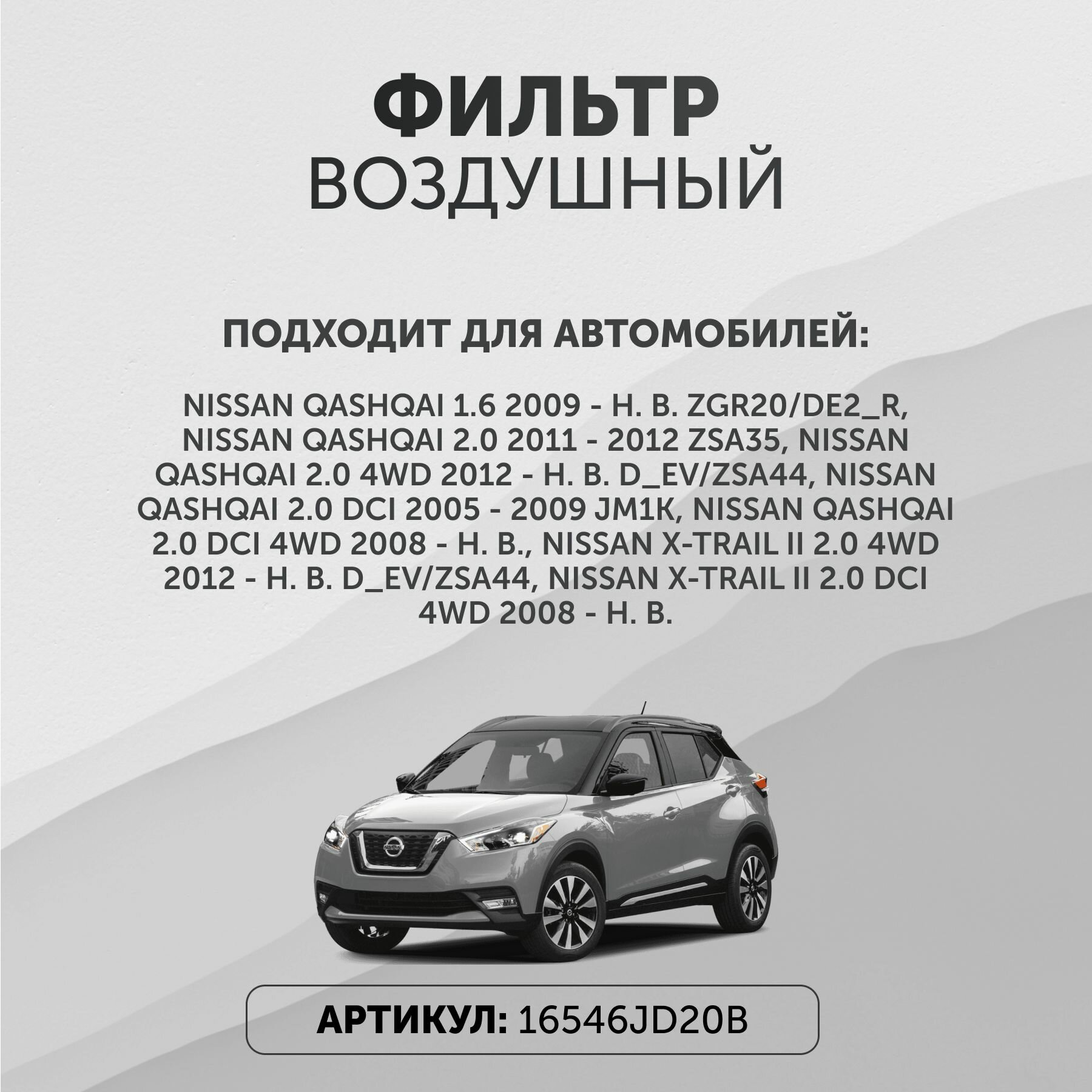 Фильтр Воздушный Nissan Qashqai (J10) 2006-2014,Nissan Qashqai 2 (Jj10) 2008-2014,Nissan X-Trail (T3 NISSAN арт. 16546jd20b