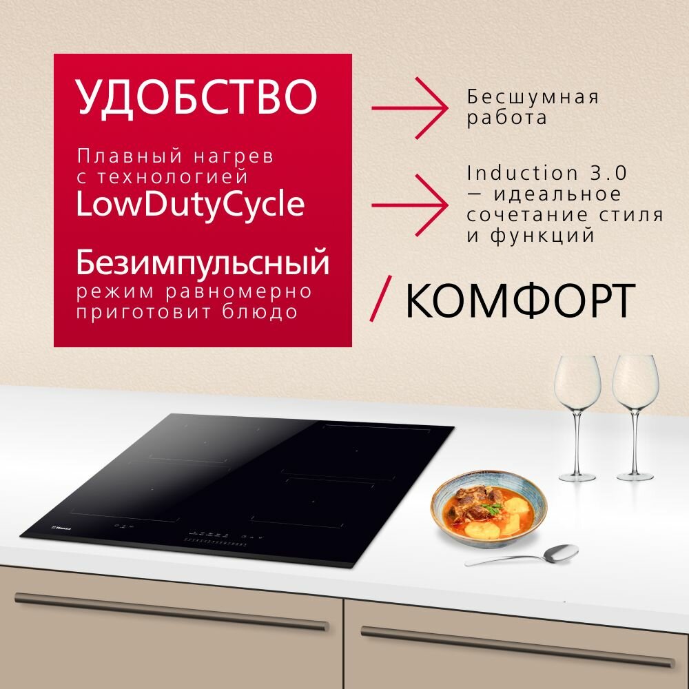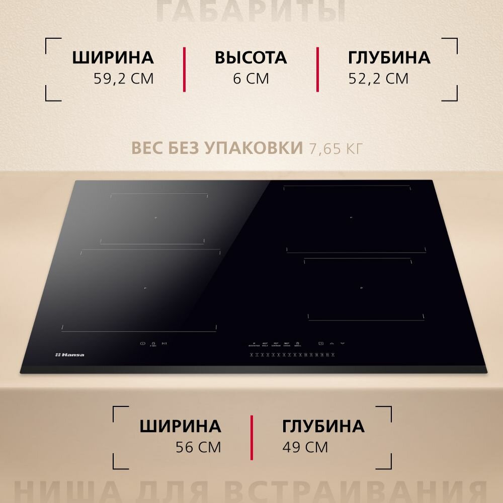 Индукционная варочная панель Hansa BHI67116, стеклокерамическая поверхность, блокировка от детей, таймер, функция Booster, автоотключение, индикация остаточного тепла, черная
