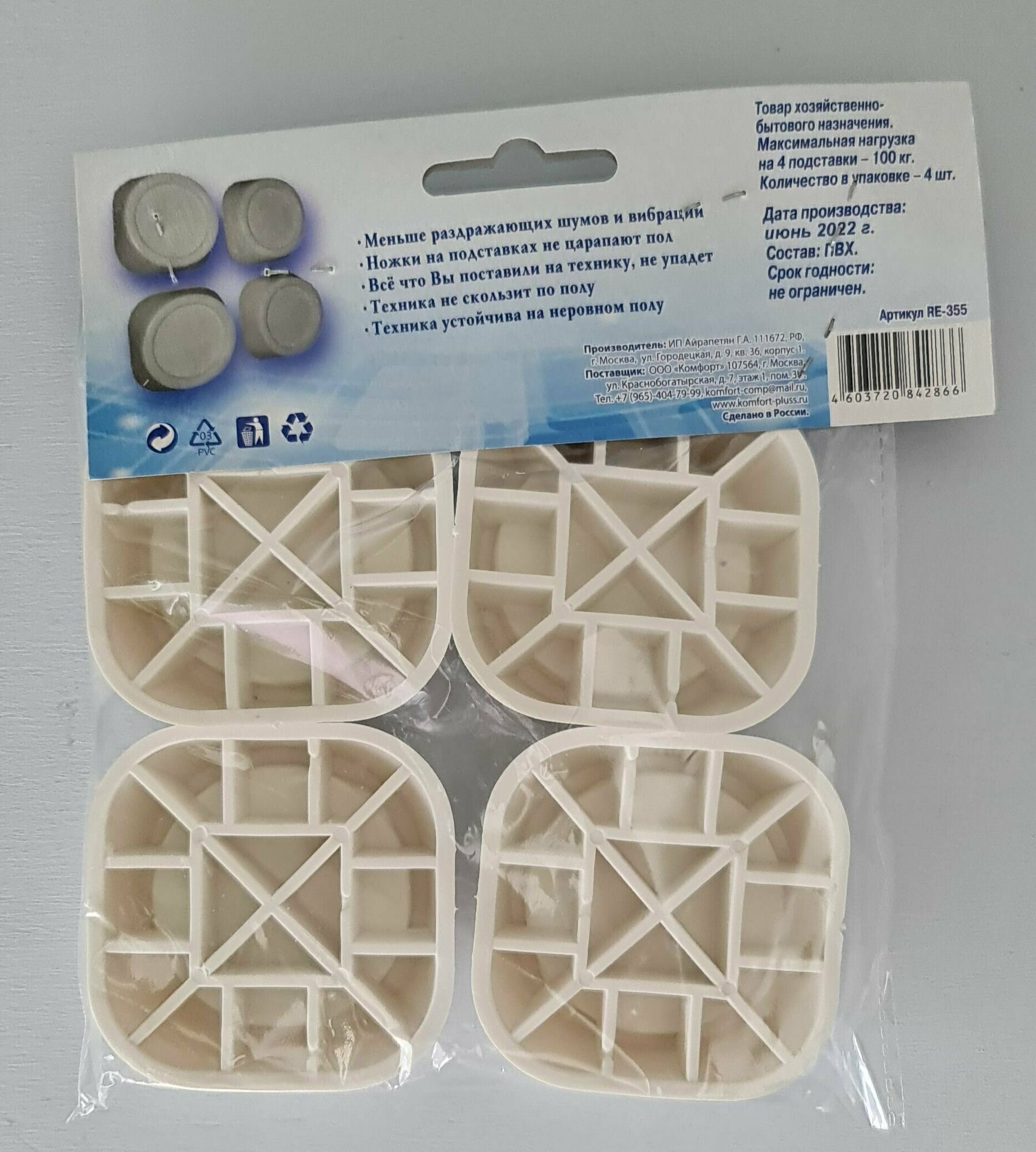 | Дополнительная информация | Максимальная нагрузка на 4 подставки -100 кг. Количество в упаковке-4 шт. |